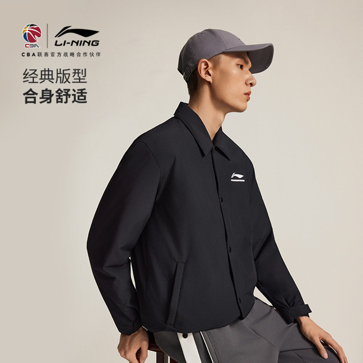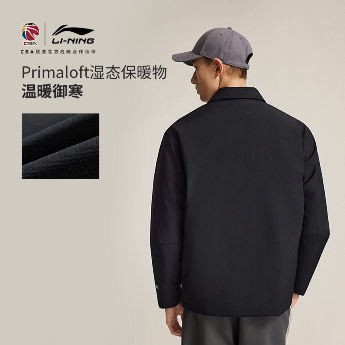 李宁CBA棉夹克男士25新款外套茄克宽松上衣冬季翻领运动服棉袄男