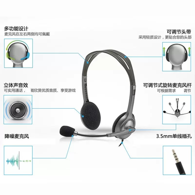 罗技H111头戴式有线耳机带麦话筒降噪耳麦话务员专用电话客服听歌