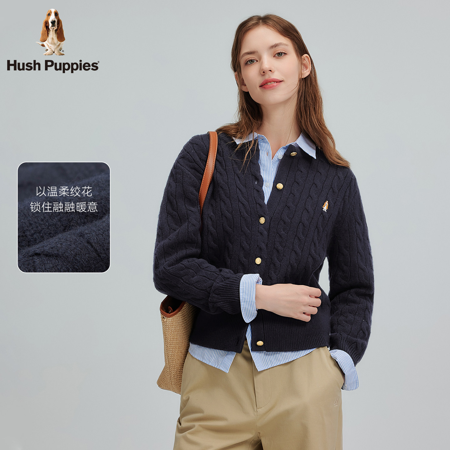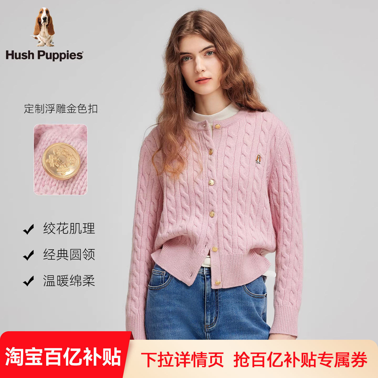 【明星同款】暇步士2025秋冬新款绵羊毛保暖毛衣气质绞花针织开衫