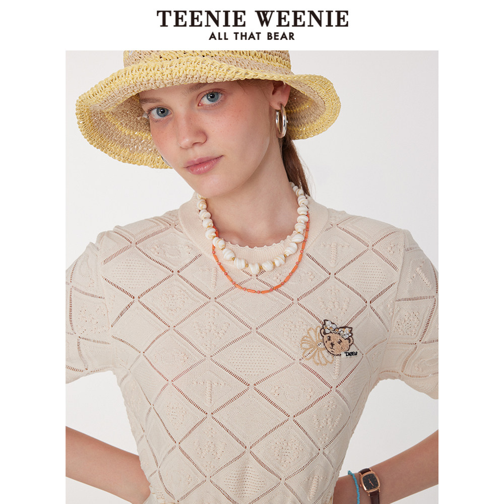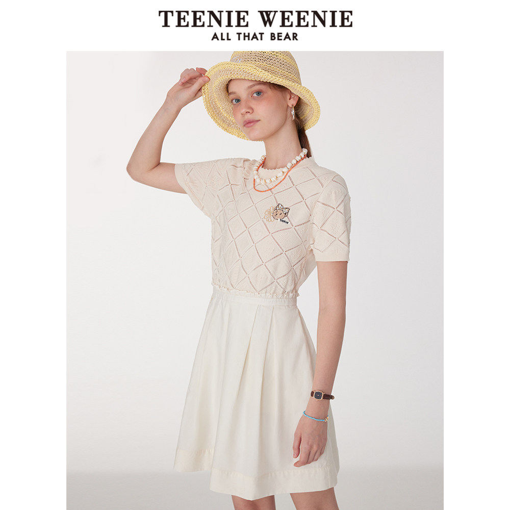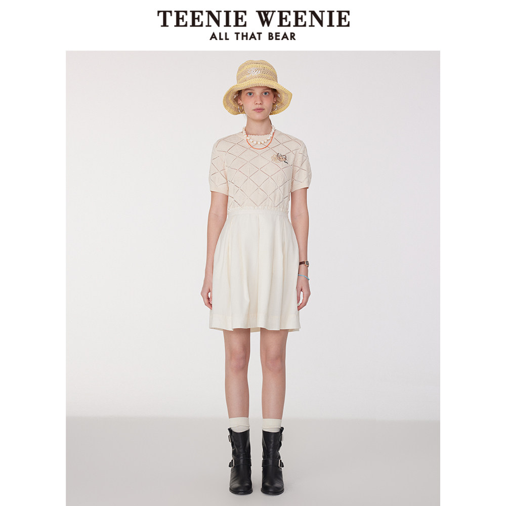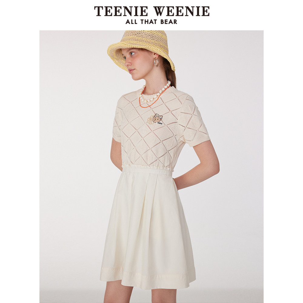 TeenieWeenie小熊奥莱连衣裙2025年夏季新款优雅气质网格拼接裙子