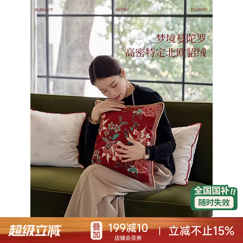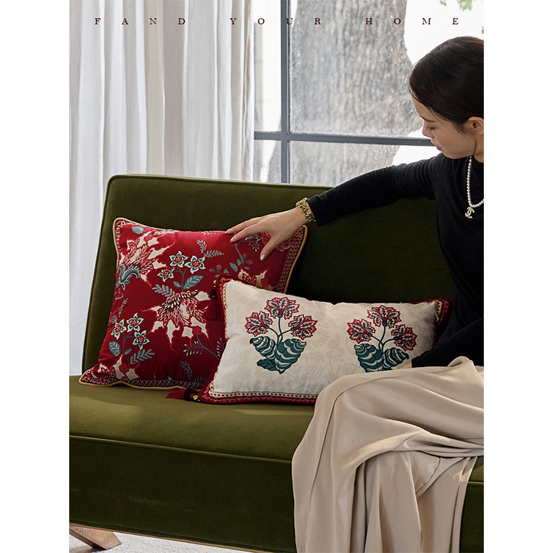 蜡笔派曼陀罗抱枕轻奢复古节日红色客厅沙发靠垫卧室床头睡觉专用