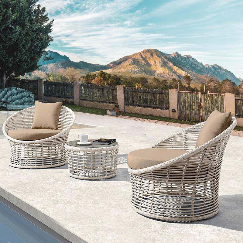 户外藤椅酒店阳光房庭院花园休闲茶几三件套室外防水防晒阳台桌椅