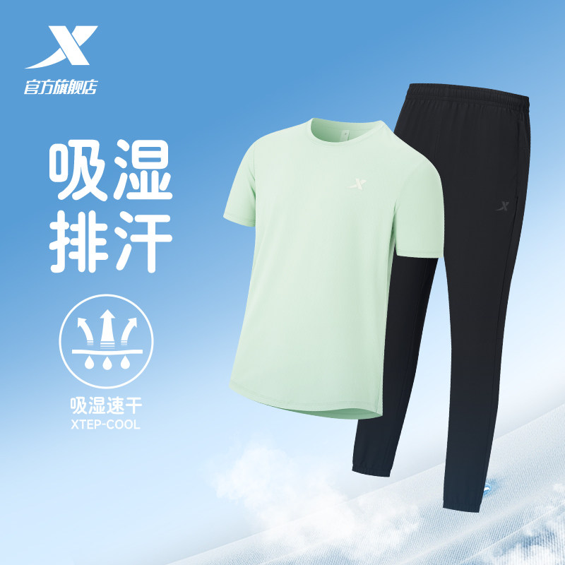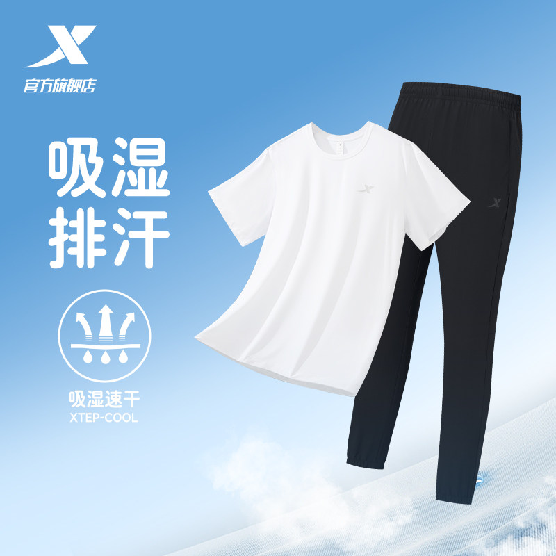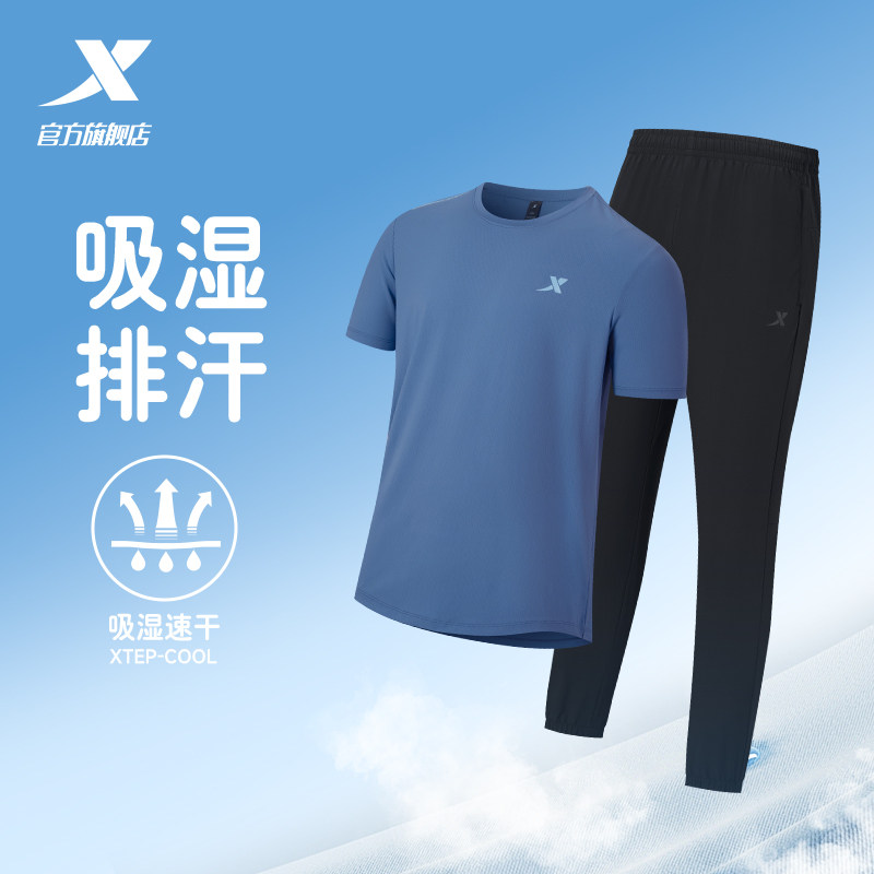 特步运动套装男款春夏季男士冰丝速干短袖t恤运动服长裤爸爸男装