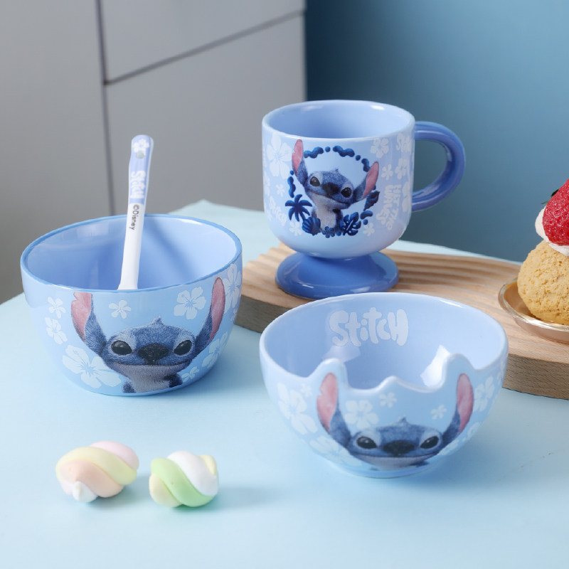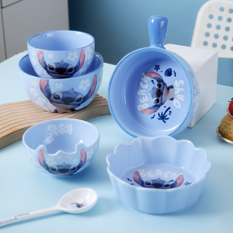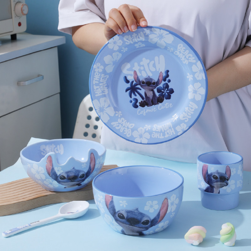 迪士尼夏威夷史迪奇陶瓷餐具餐盘家用碗可爱高颜值吃饭盘子卡通