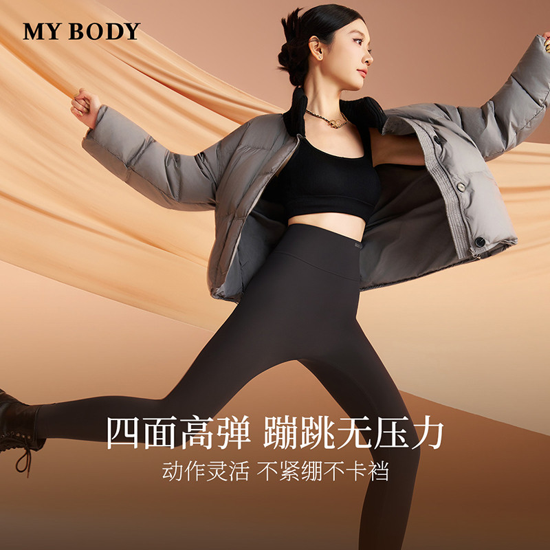 MYBODY商场同款冬季新款收腹蜜桃臀山羊绒桑蚕丝芭比裤外穿鲨鱼裤