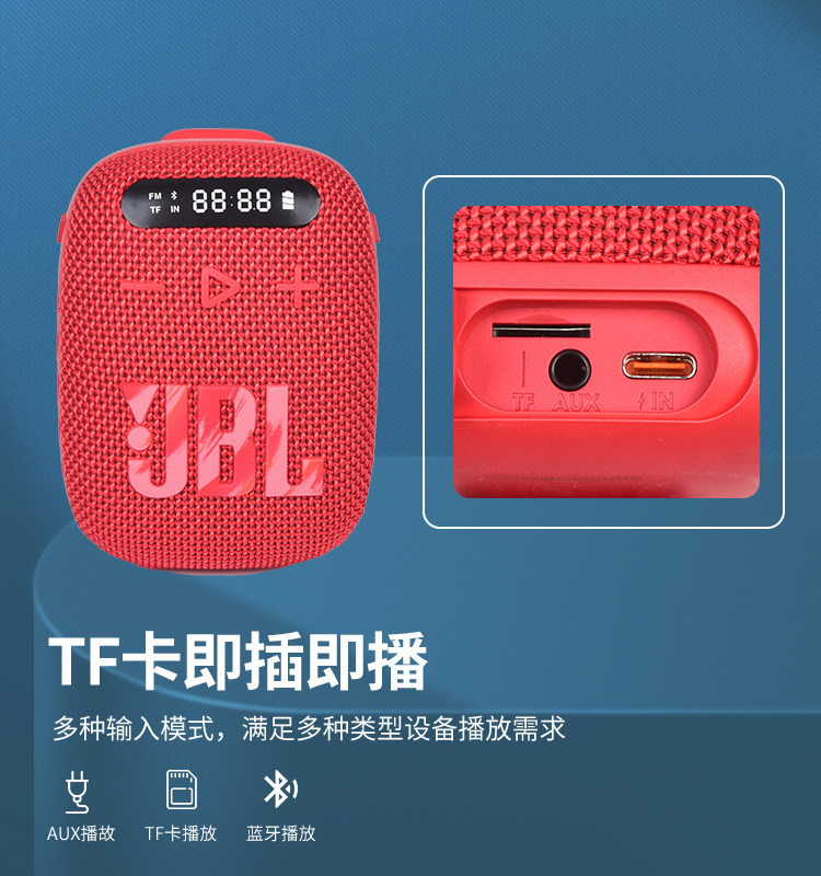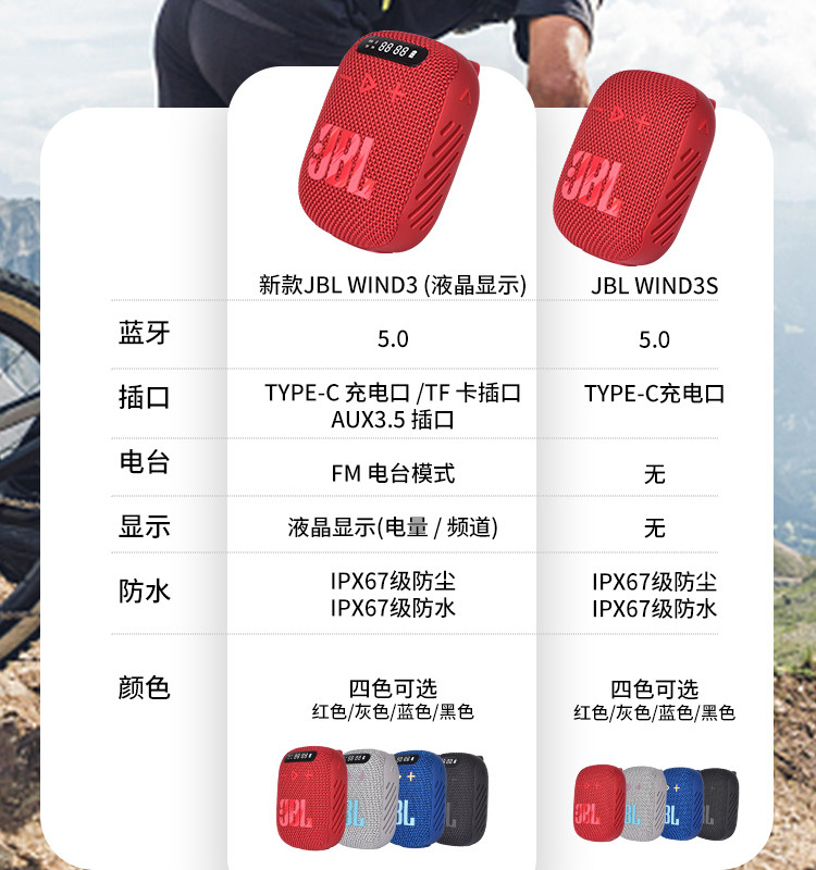 JBL WIND3便携迷你蓝牙音响 户外骑行单车防水插卡小音响麦克风3S