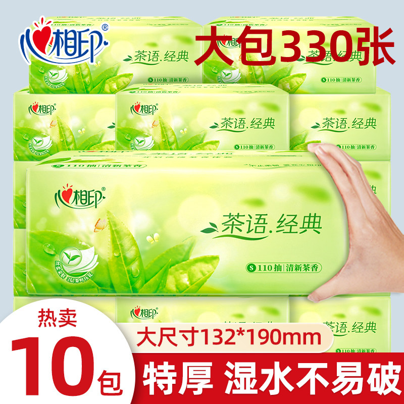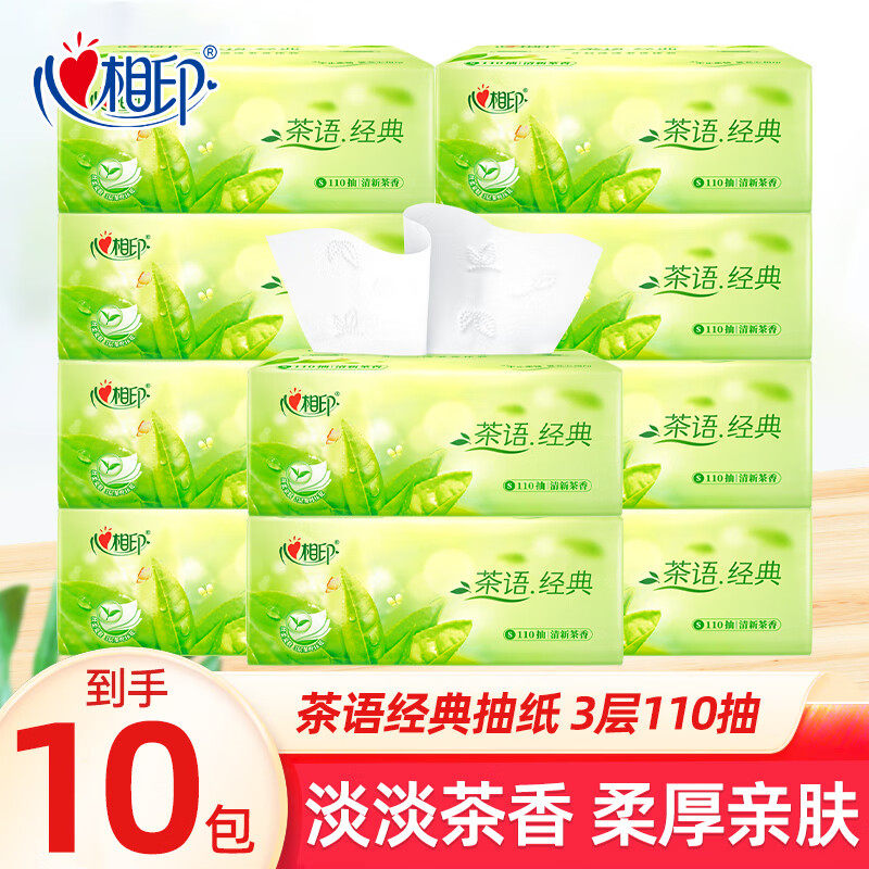 【爆卖300万件】心相印抽纸无香型家用面巾纸茶语抽纸110抽10包