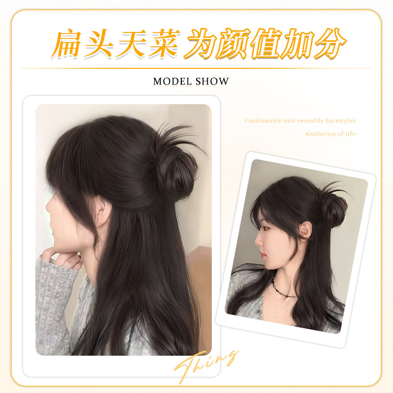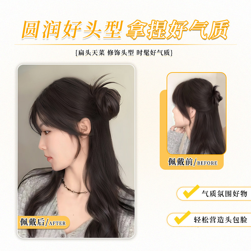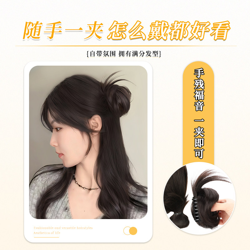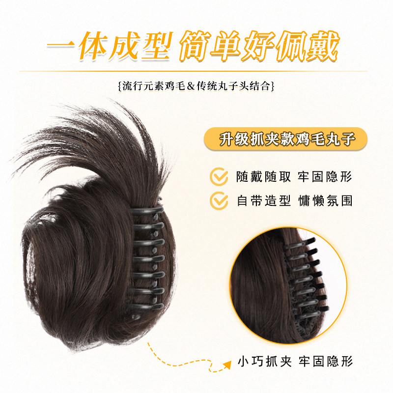 鸡毛头丸子头假发抓夹半扎盘发发包鸡窝花苞头后脑勺增发假发发圈