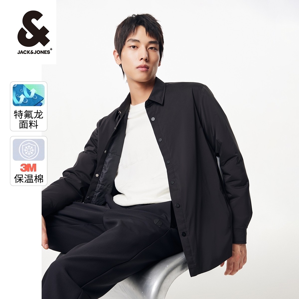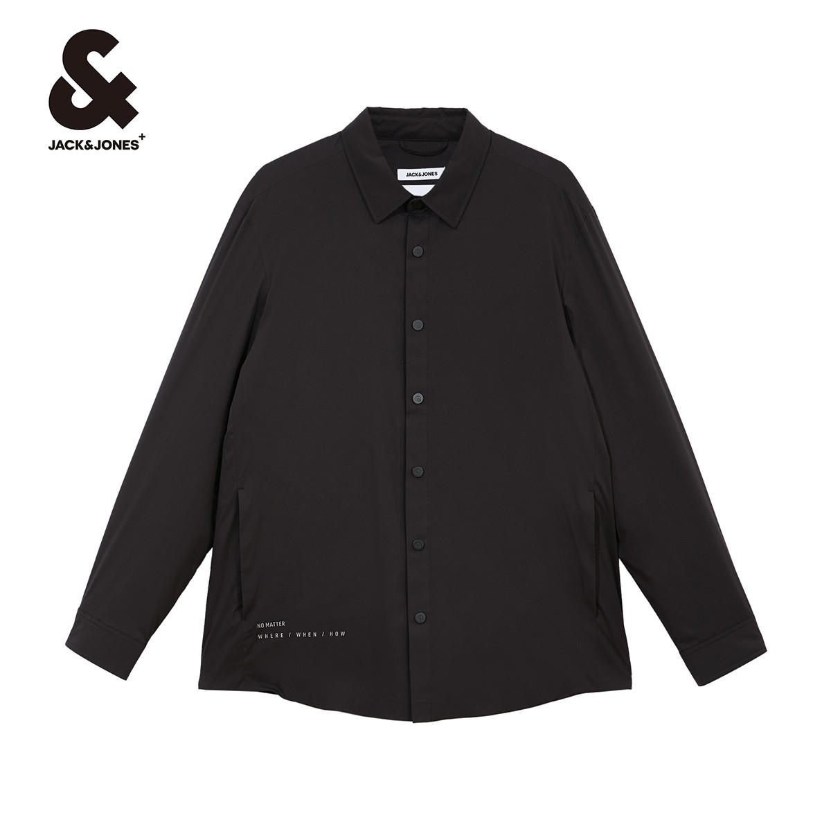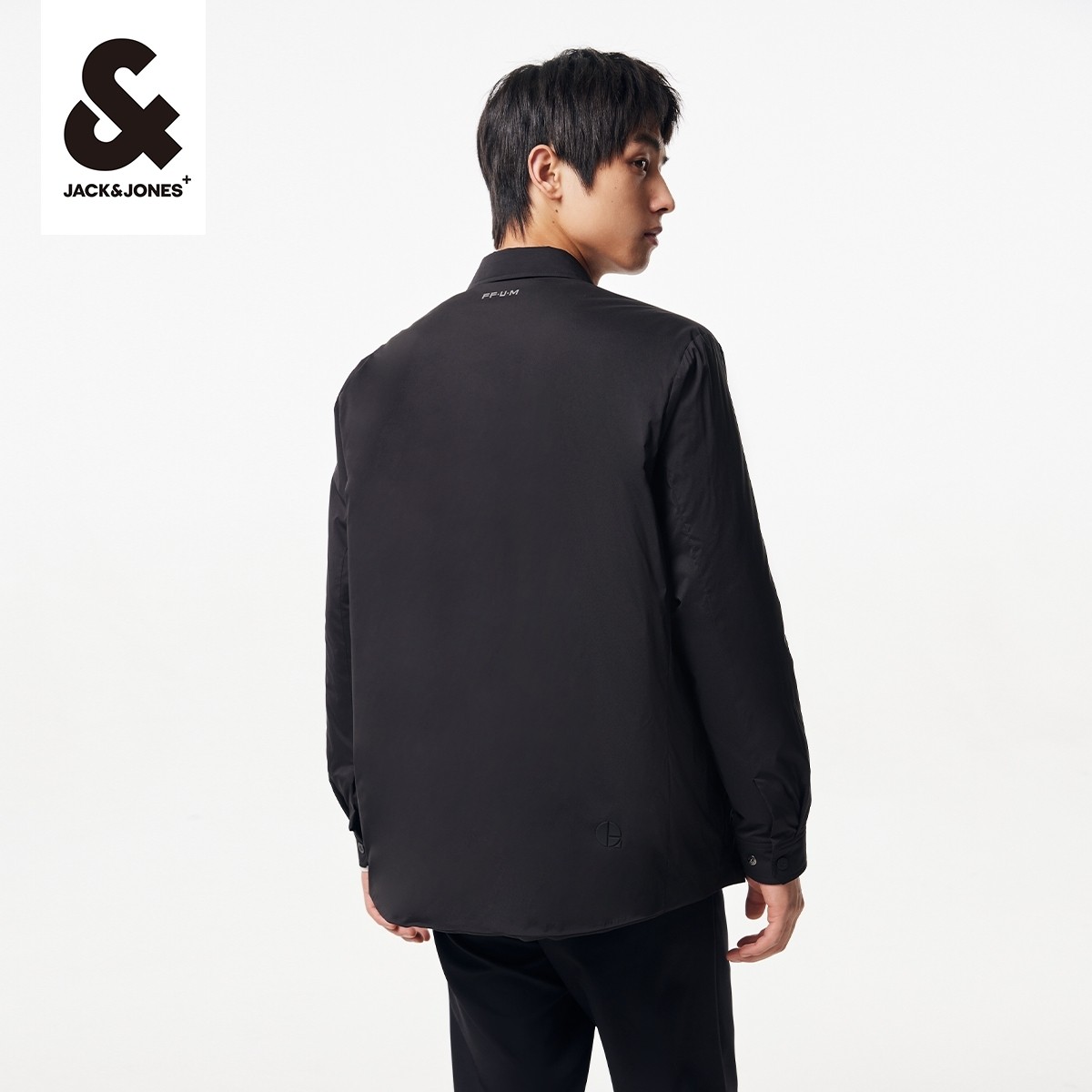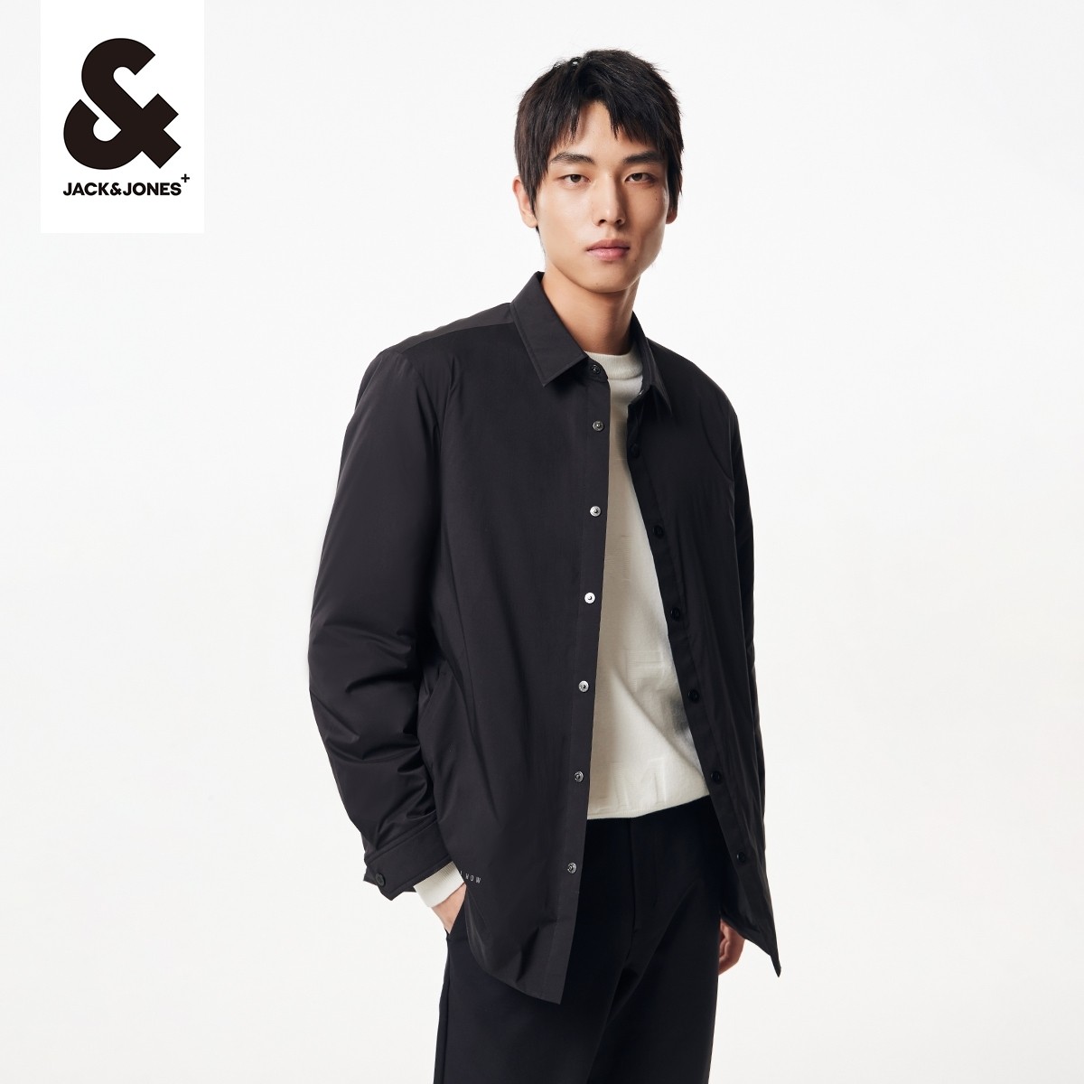 杰克琼斯outlets24春男士宽松翻领拉链插袋纯色长袖厚款衬衫男装