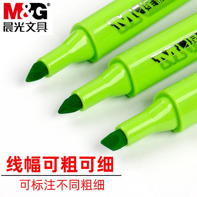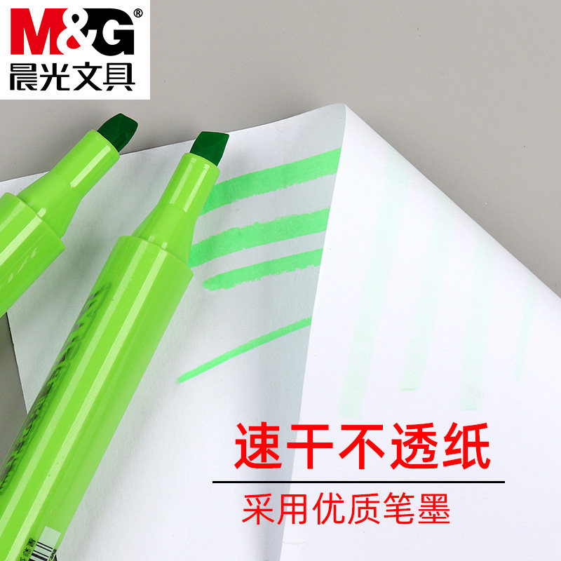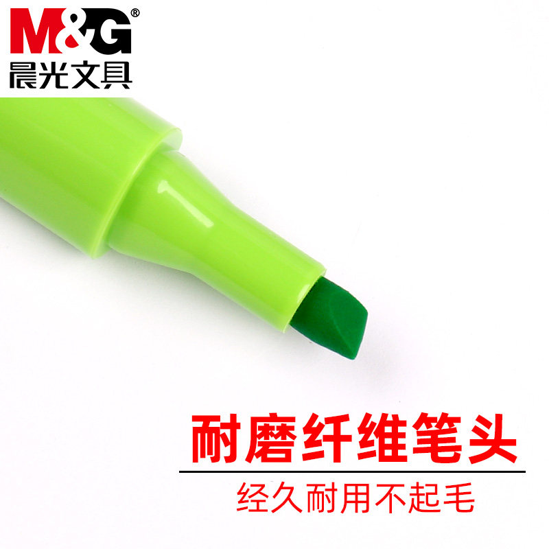 晨光绿色大容量荧光笔柔彩荧光标记笔学生用无味糖果色斜头记号笔彩色笔荧光粗划重点手帐笔专用做笔记初中