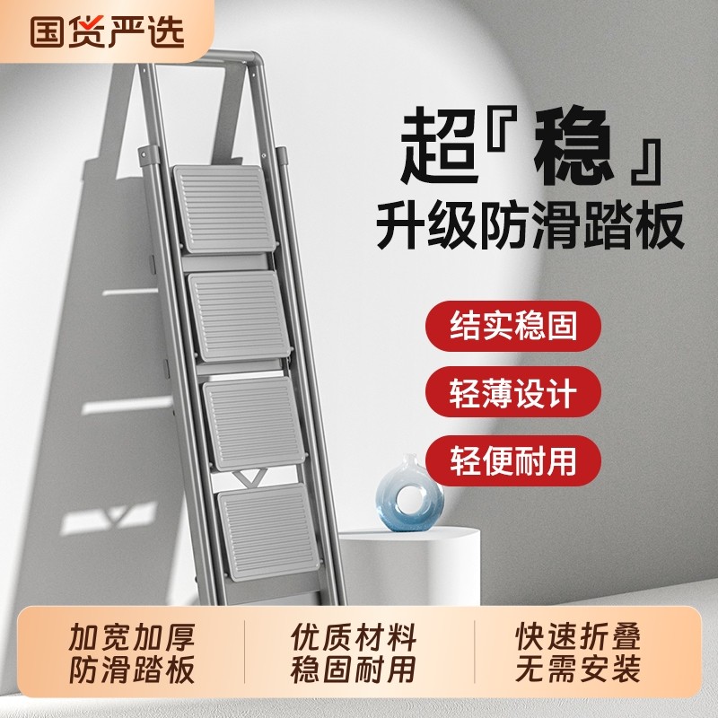 肯泰梯子家用人字梯加厚伸缩梯折叠梯室内多功能四步小楼梯花架梯