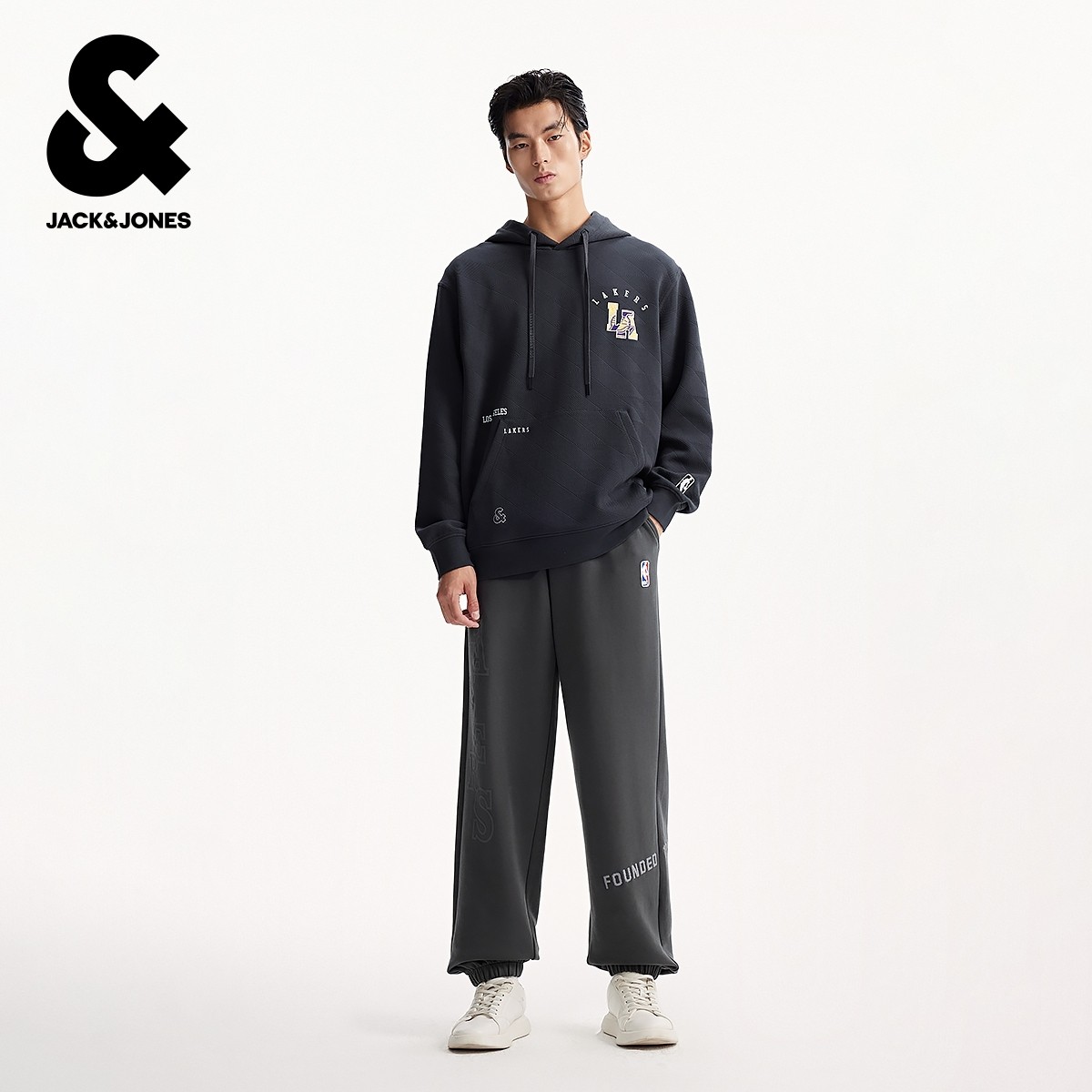杰克琼斯男装秋季略宽松束脚裤长裤卫裤NBA联名刺绣图案潮流酷