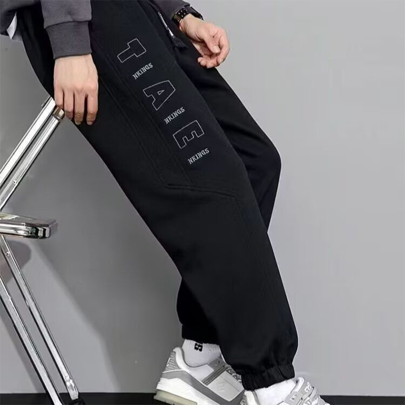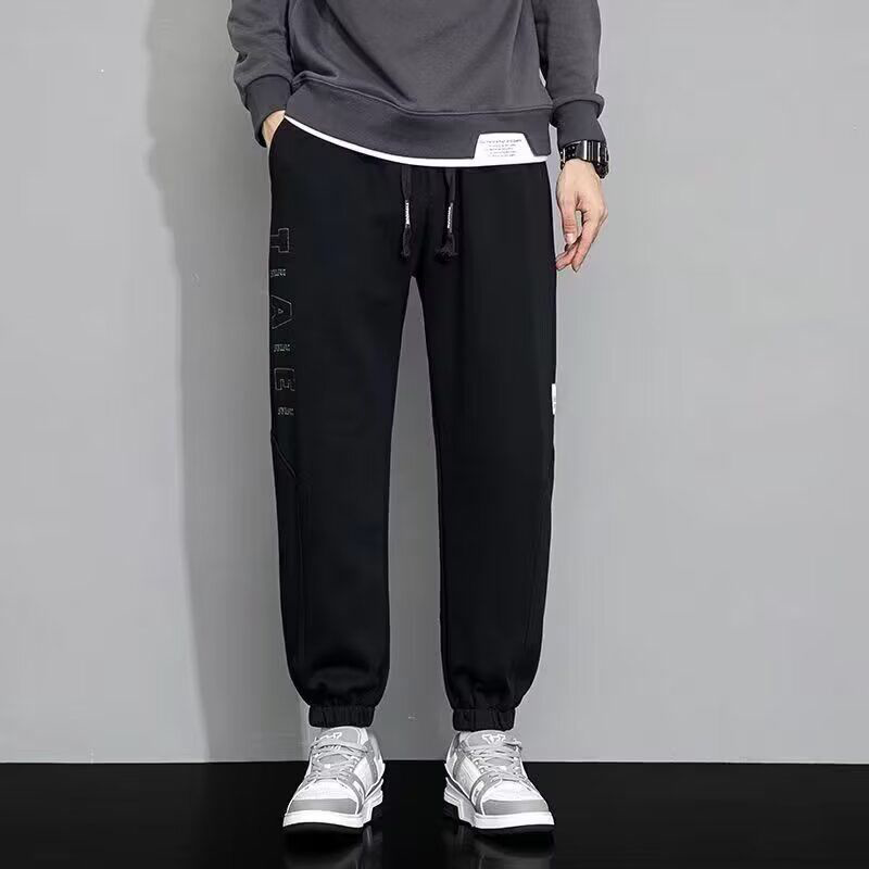 卫裤男春秋新款日系潮牌拼接字母休闲运动长裤男士宽松重磅束脚裤