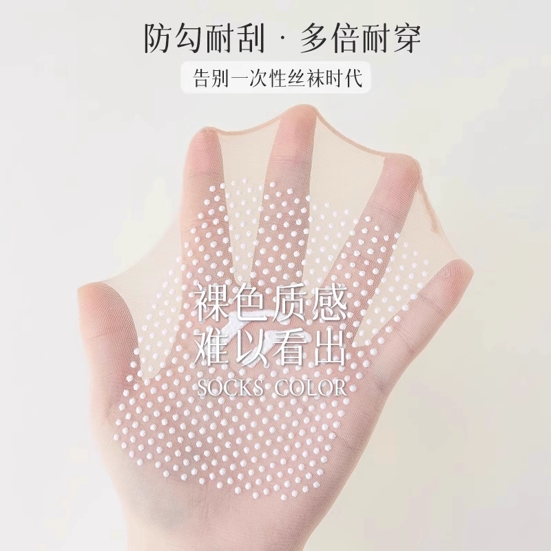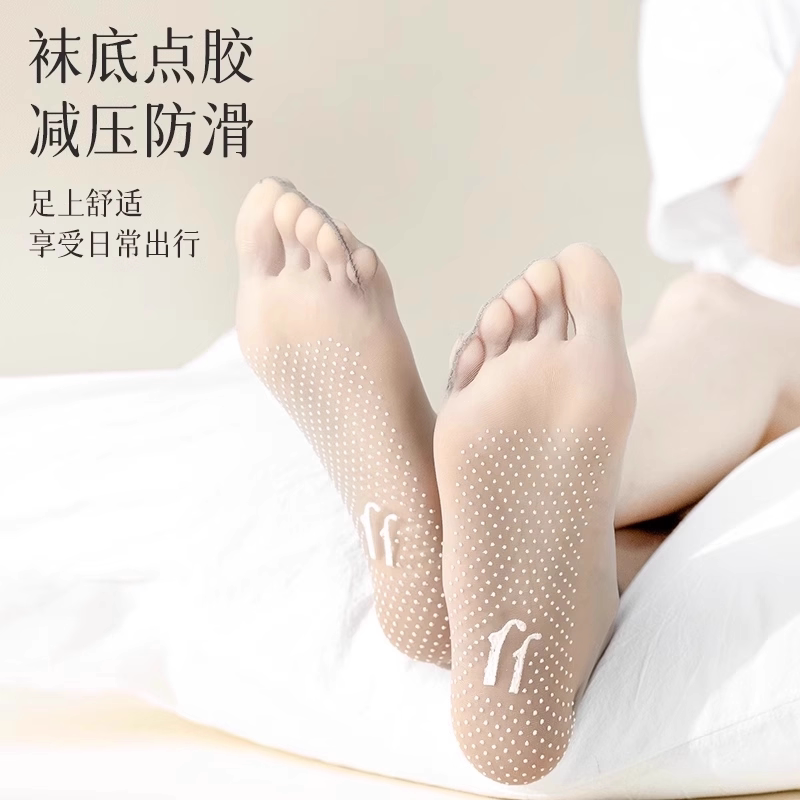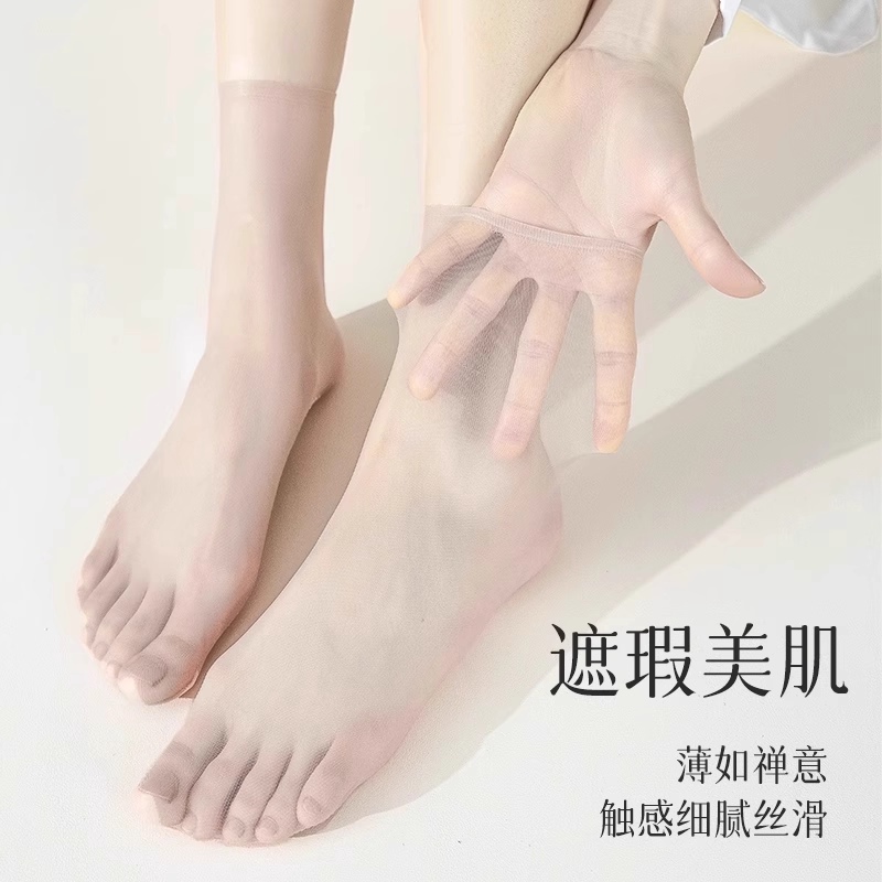 冰丝袜子女夏薄款中筒袜水晶无痕透明点胶防滑女士肉色防勾丝长袜