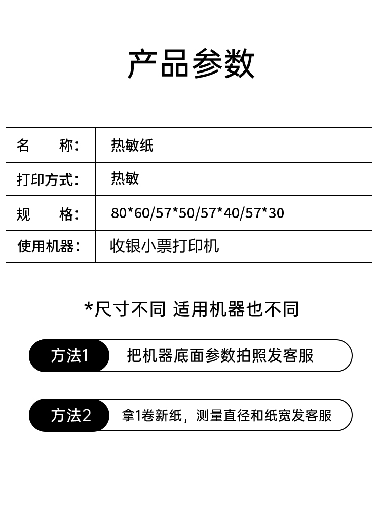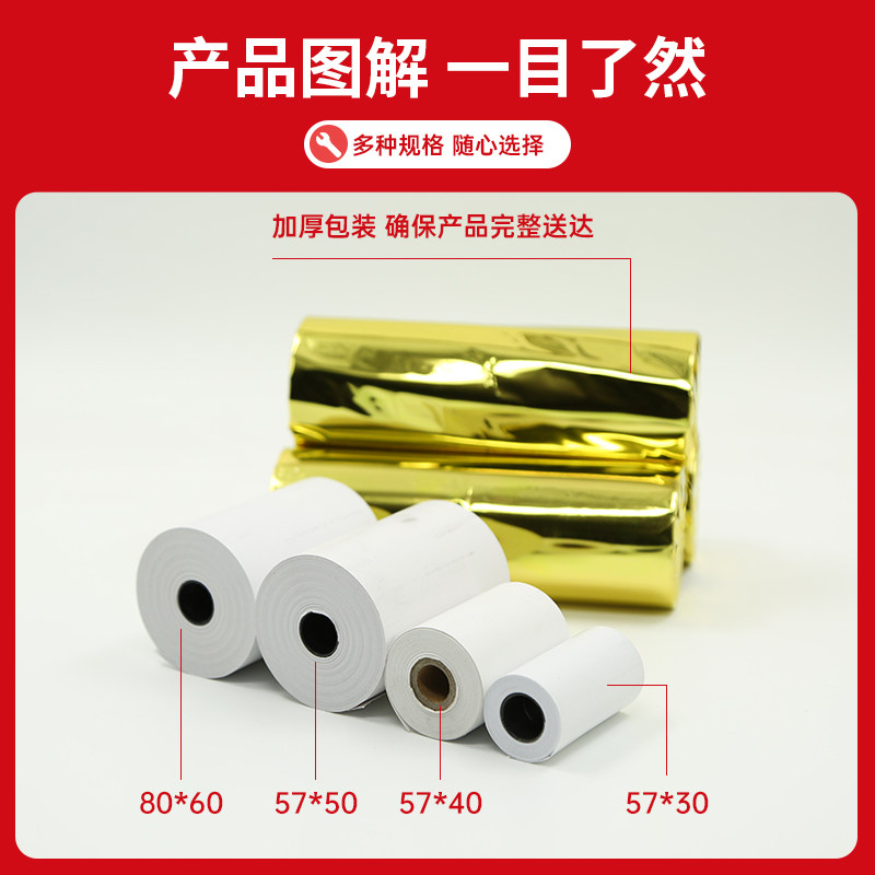 热敏收银纸57x50热敏纸57x40 57x30mm美团外卖小票纸58mm通用80x60mm超市餐厅票据厨房收银收款打印纸/卷纸