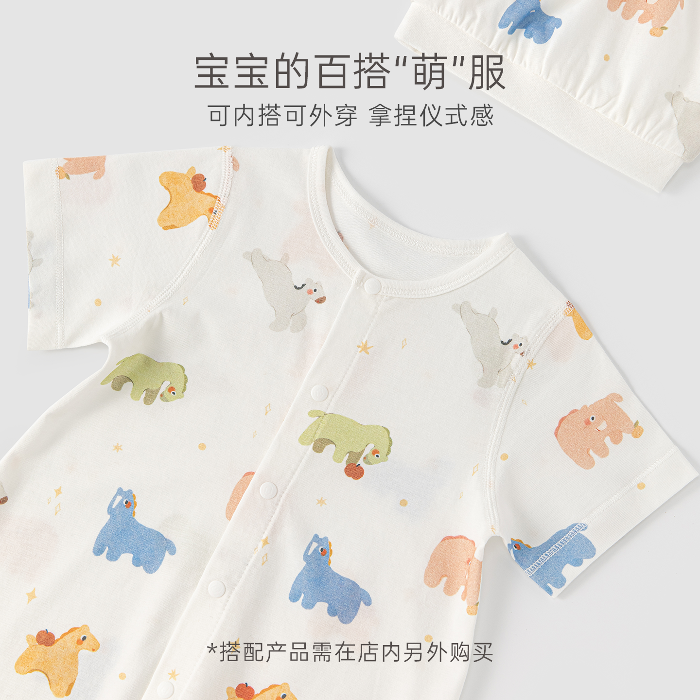 【轻氧棉】婴儿夏季薄款短袖连体衣宝宝马年哈衣居家凉感透气爬服