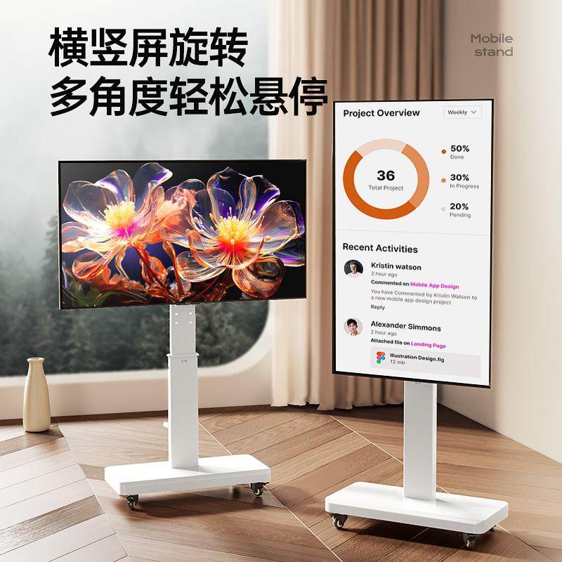 电视可移动支架落地式带轮旋转推车广告投屏直播显示器通用挂架
