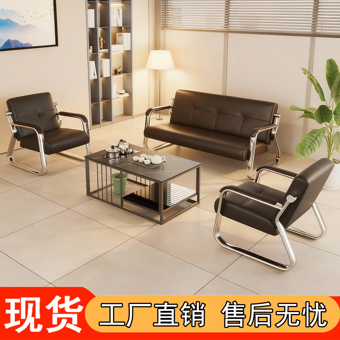 接待室办公沙发茶几组合简约现代商务会客简易办公室沙发三人位