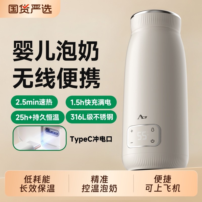 3C认证AJ恒温水壶调奶杯调奶器316便携式外出无线冲奶器充电保温