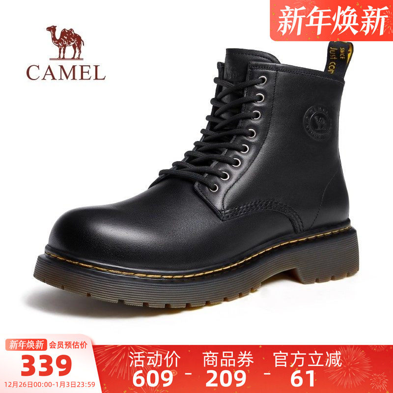 骆驼马丁靴男鞋工装加绒加厚保暖户外男款休闲中高帮时装靴子秋冬