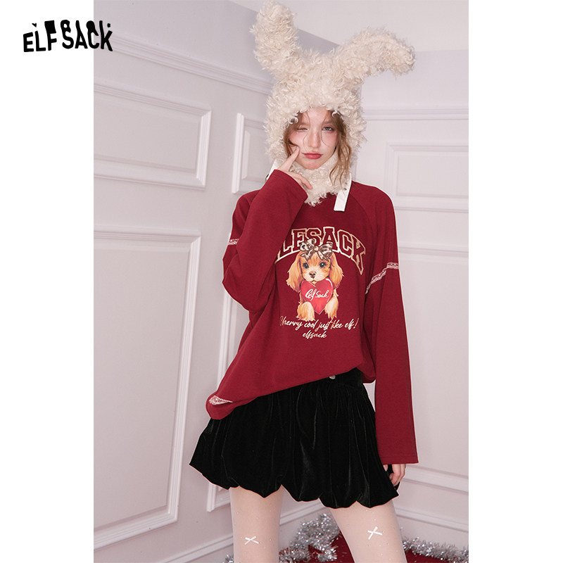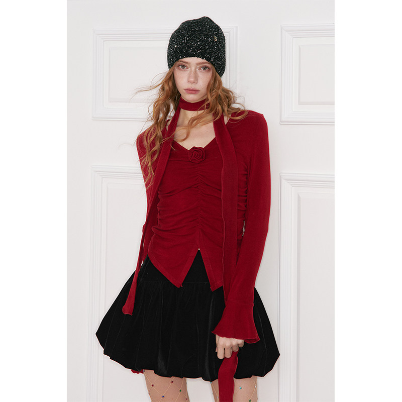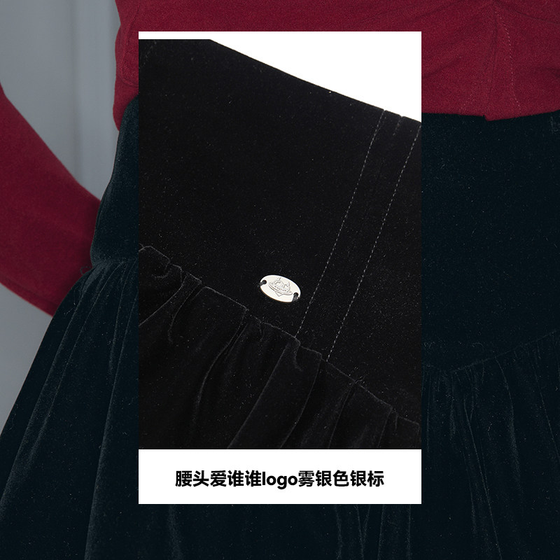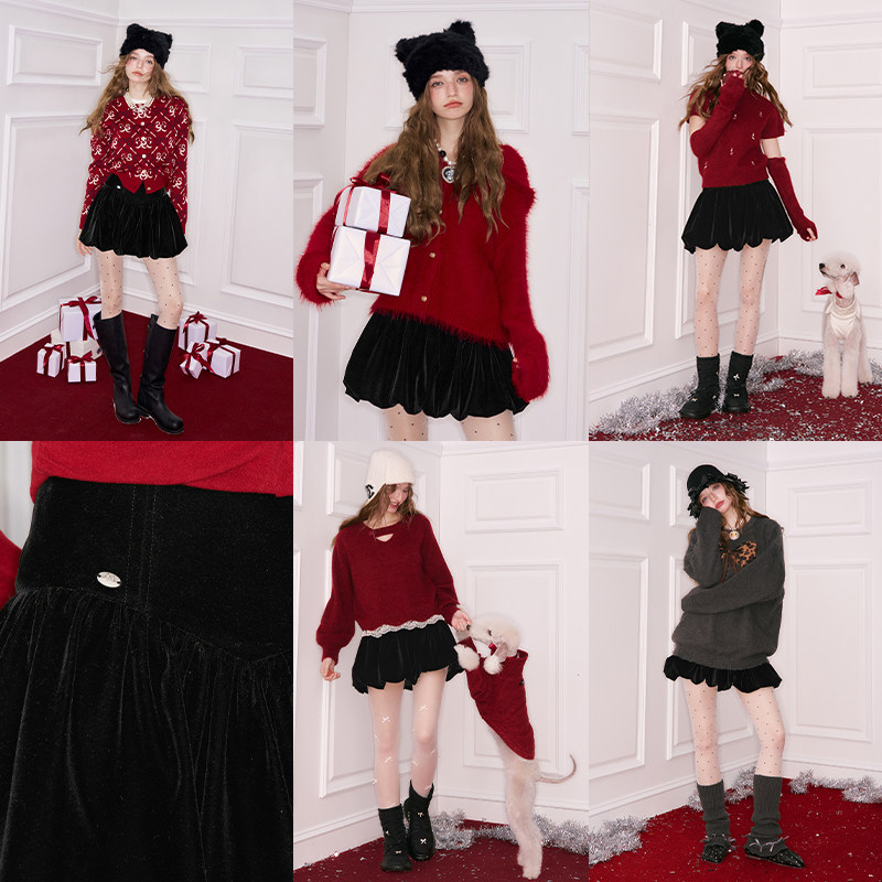 妖精的口袋黑色丝绒花苞裙半身裙女2025冬季新款新年穿搭甜美短裙