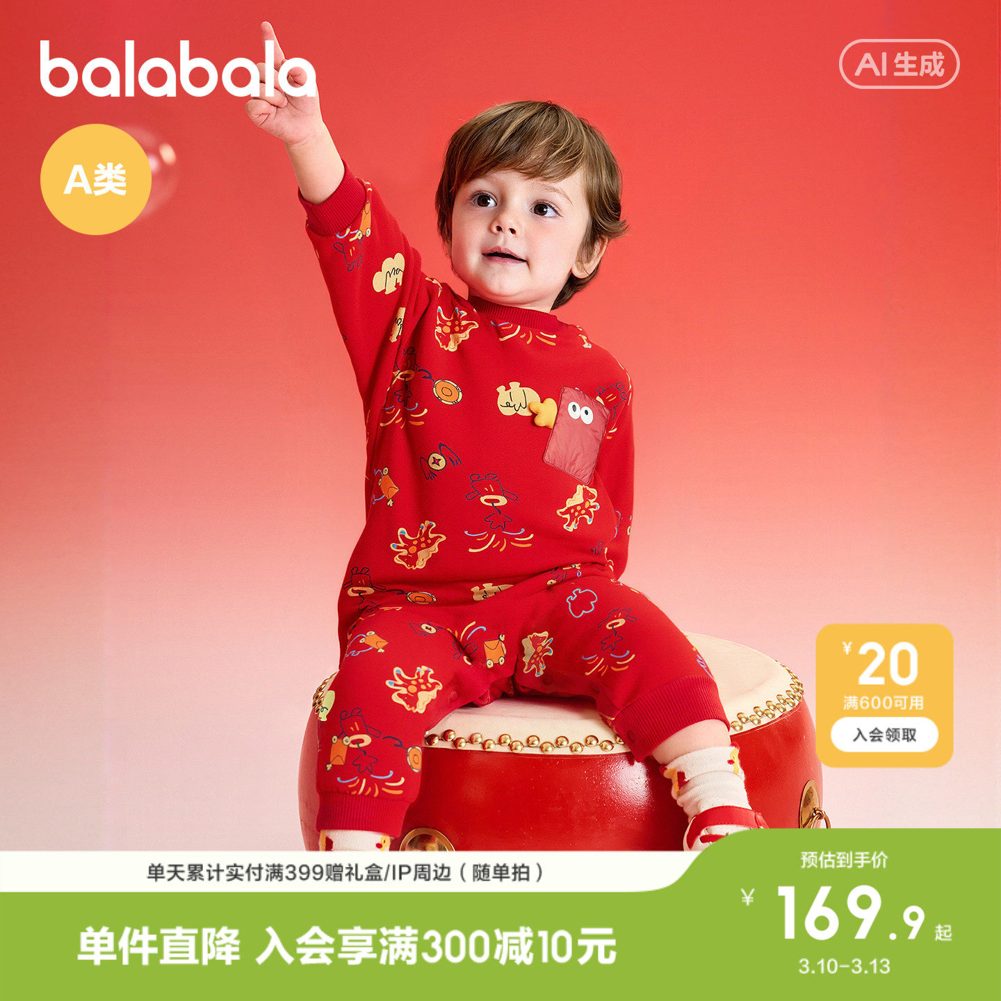 【商场同款】巴拉巴拉婴儿连体衣2026新款春装宝宝衣服红色拜年服