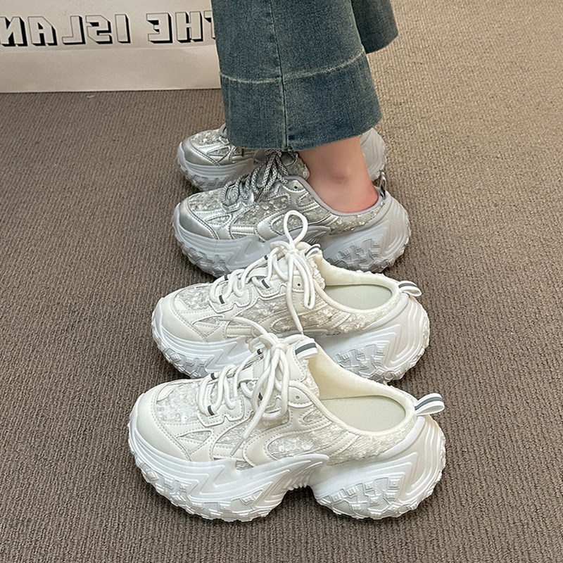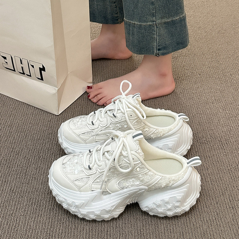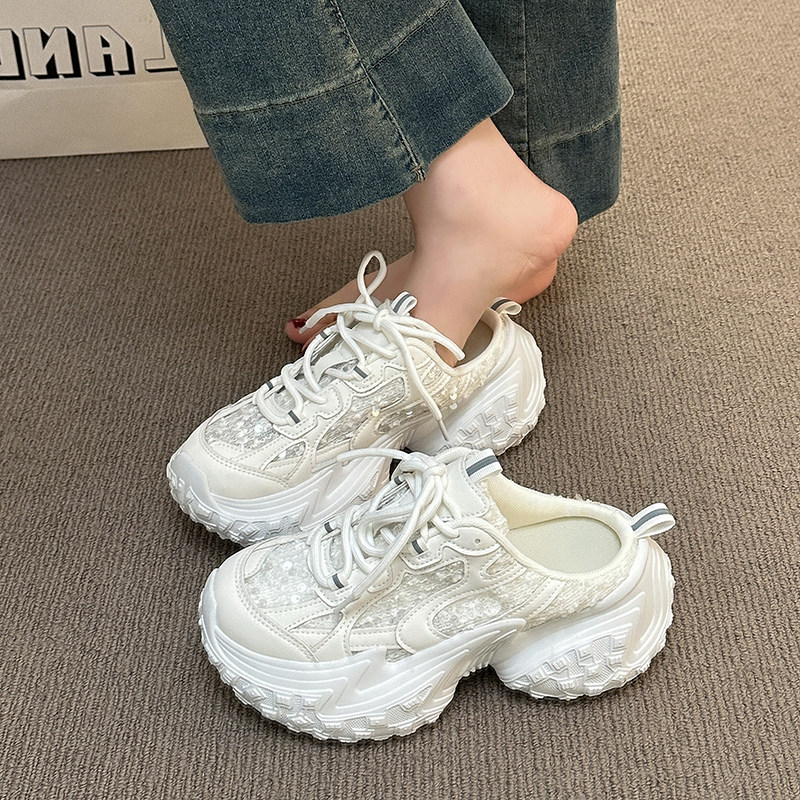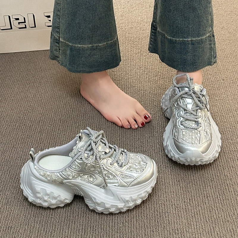 半拖老爹鞋女2026新款夏季超火百搭小个子运动厚底休闲包头拖鞋子