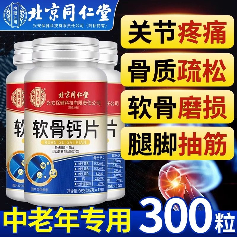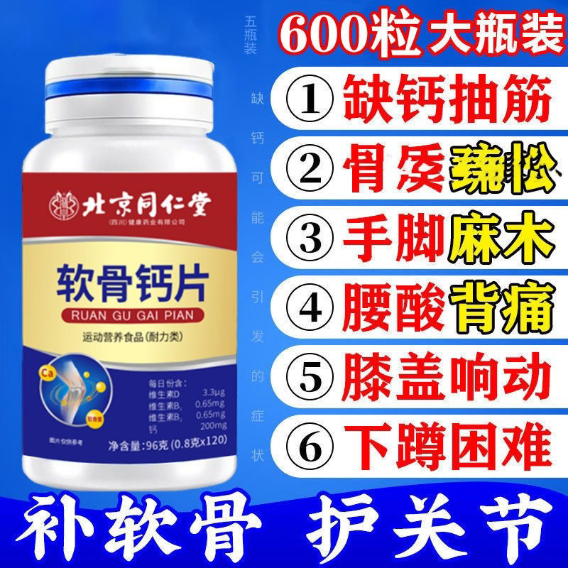 北京同仁堂软骨钙片缺钙的人特别中老年人会引起抽筋腰腿痛120粒