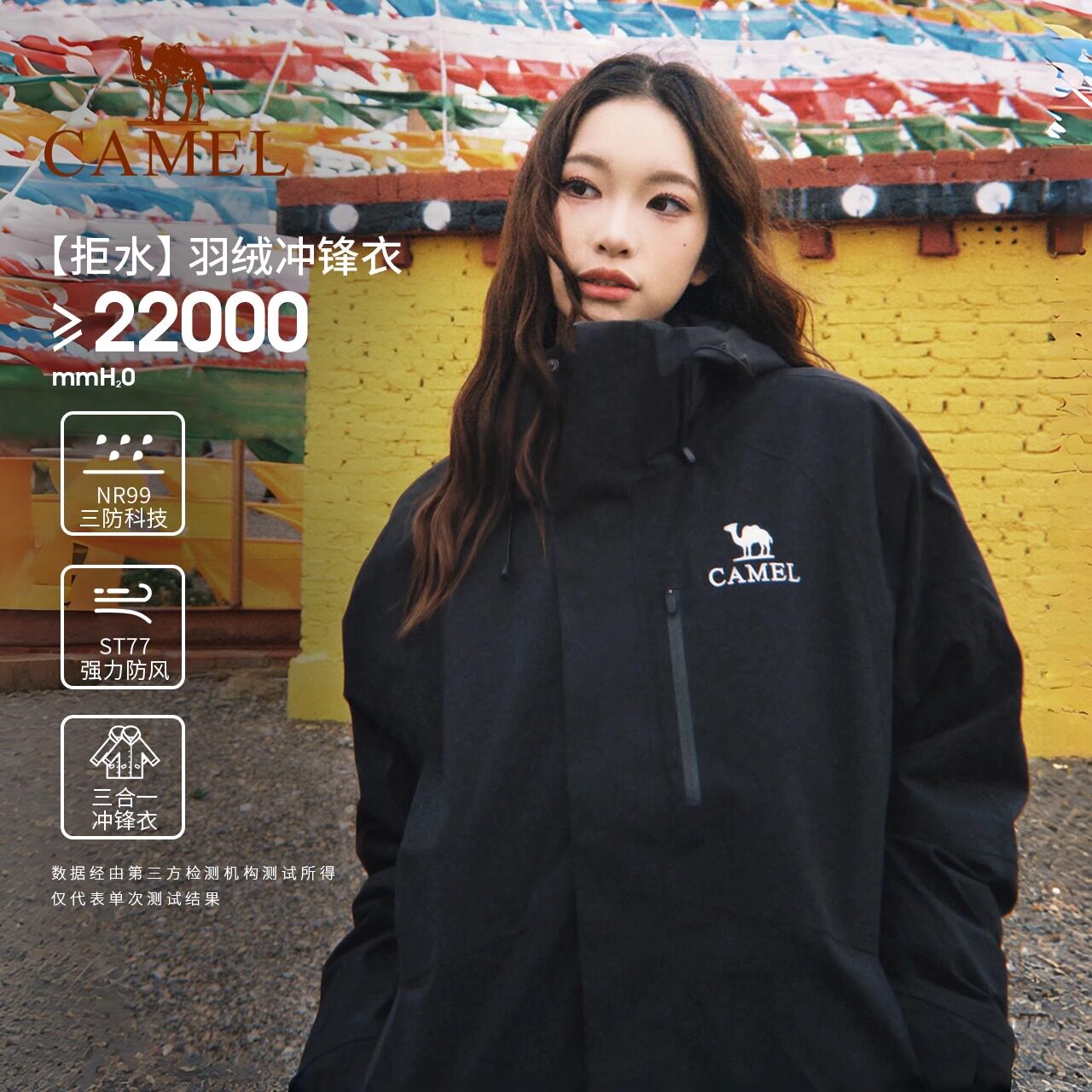 骆驼羽绒冲锋衣男女加绒加厚两件套外套25春新款三合一登山服装