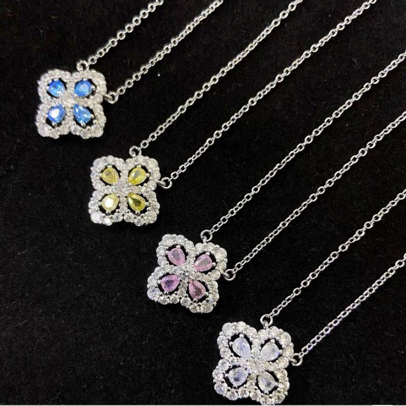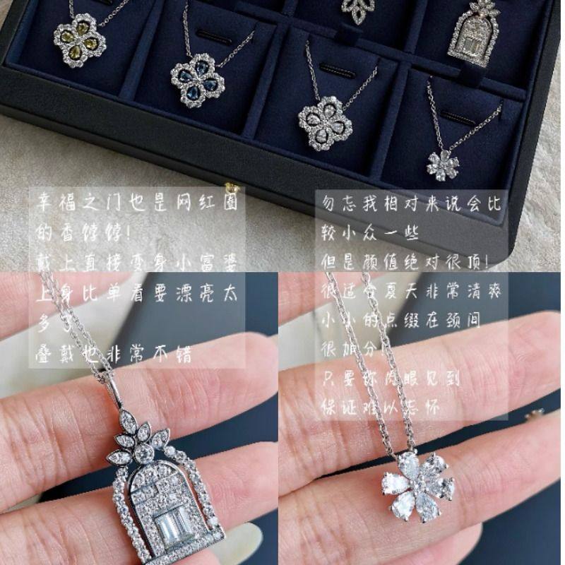 loop花型四叶草项链女925纯银莫桑钻幸福之门锁骨链满钻耳钉耳环