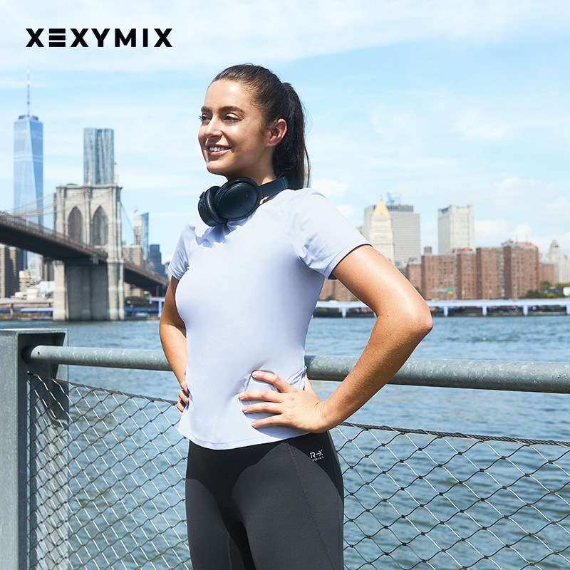 xexymix杰克茜女后背拼接修身短袖T恤跑步健身舞蹈瑜伽XWFST03J3