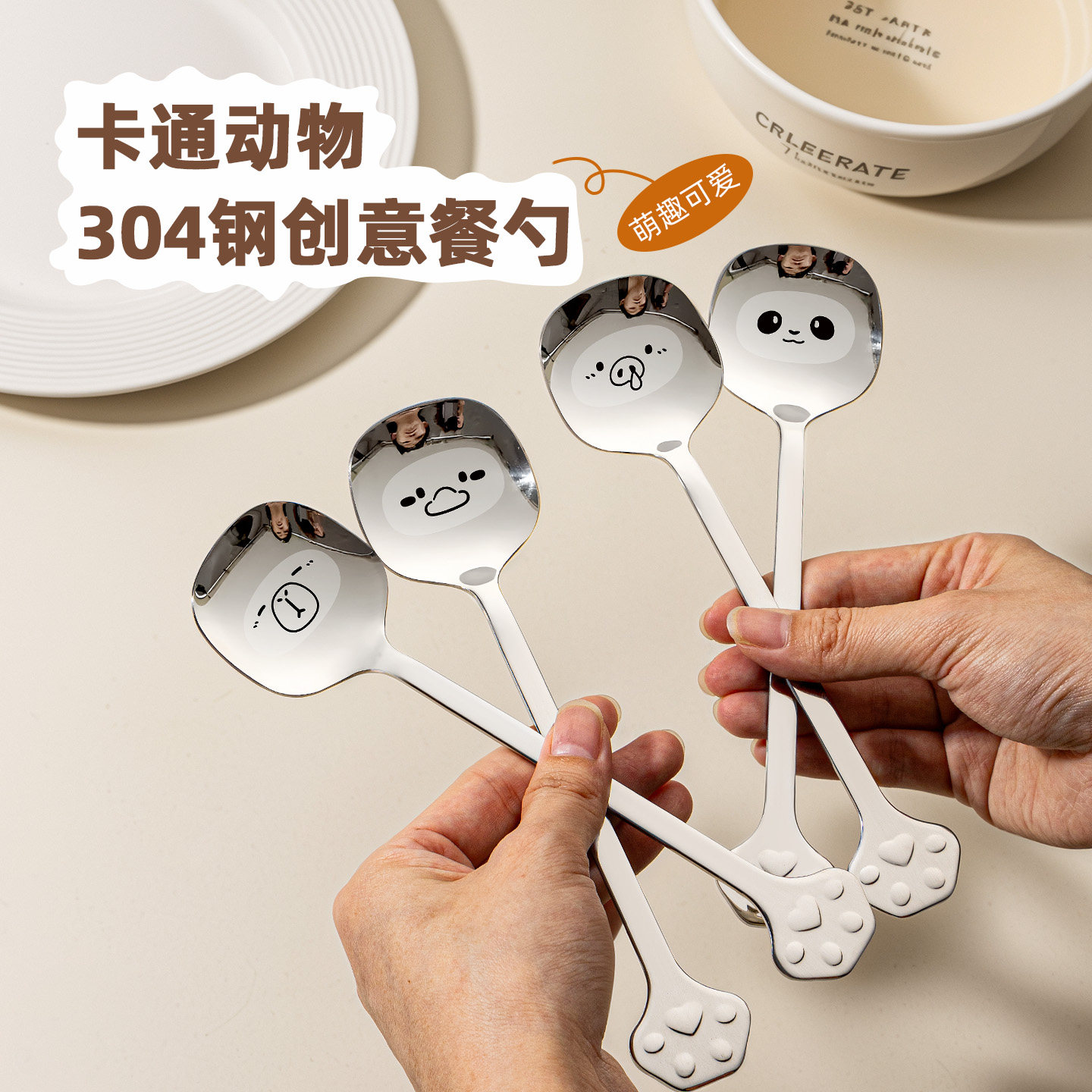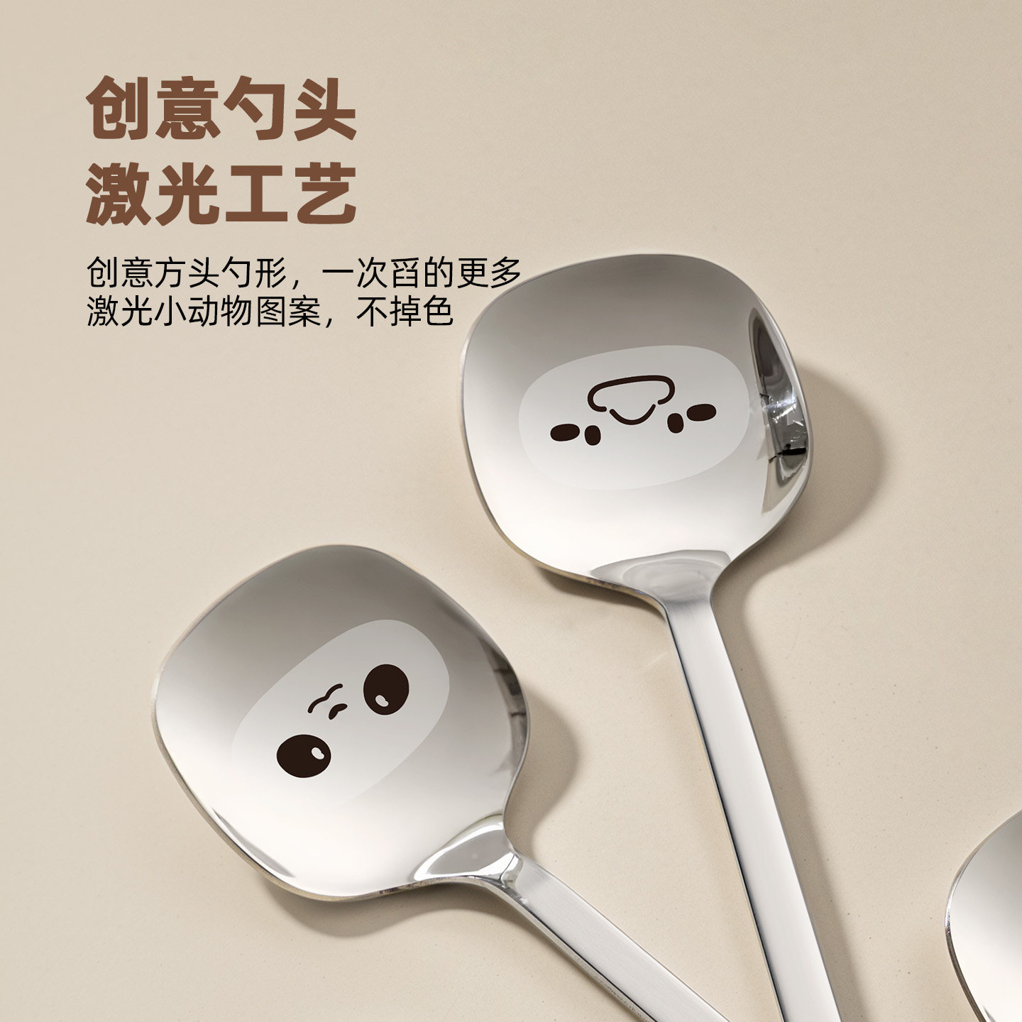 304不锈钢吃饭勺子大头铁锹可爱高颜值长柄儿童饭勺个人专用勺子