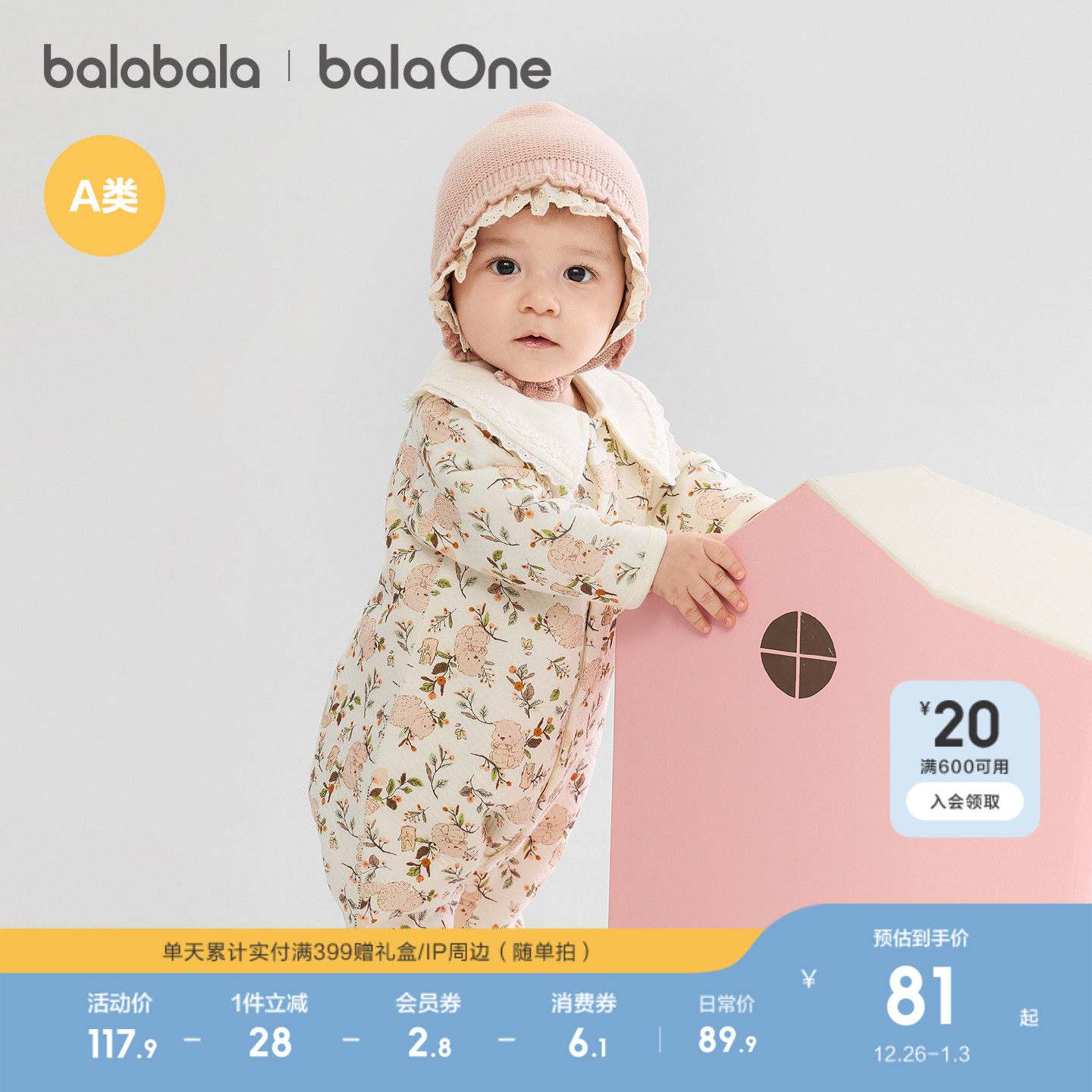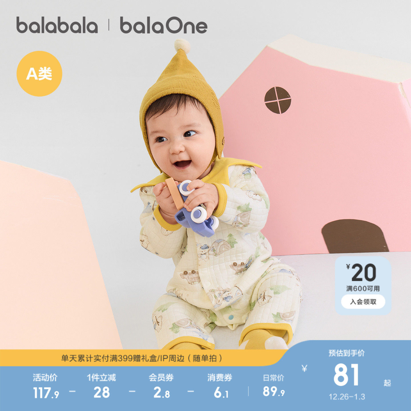 巴拉巴拉新生儿婴儿连体衣男女宝宝衣服2025新款哈衣爬服夹棉洋气