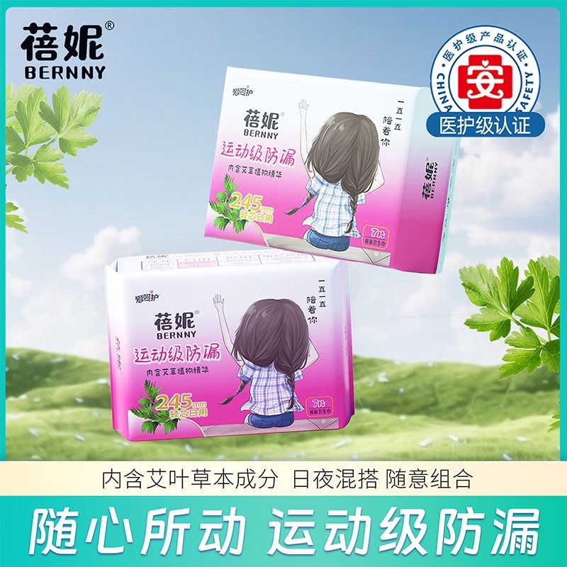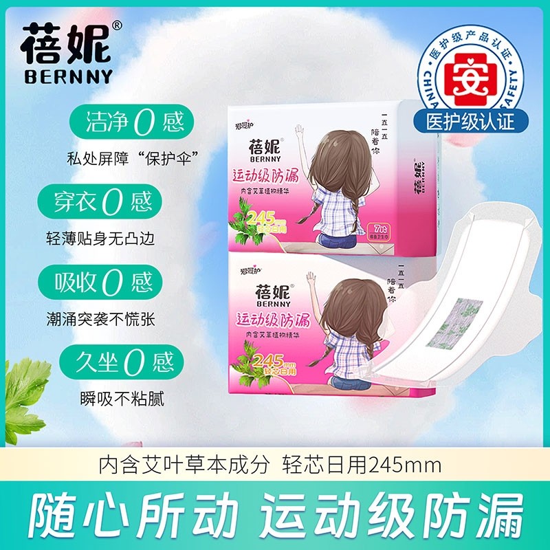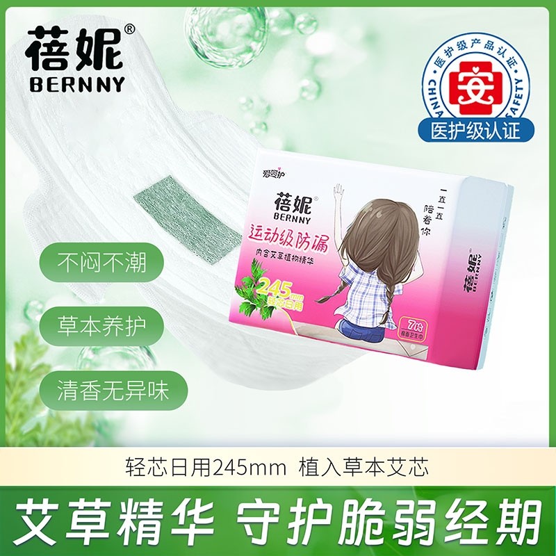 蓓妮艾草卫生巾超薄透气日夜用加长瞬吸医护级日用草本标准