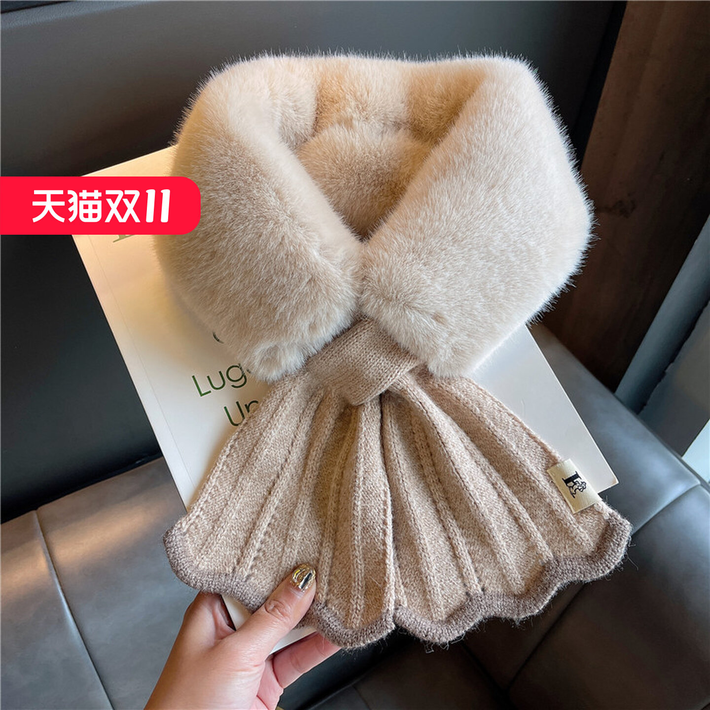 毛毛围脖女秋冬季百搭韩版加厚仿兔毛保暖针织毛绒脖套交叉毛领子