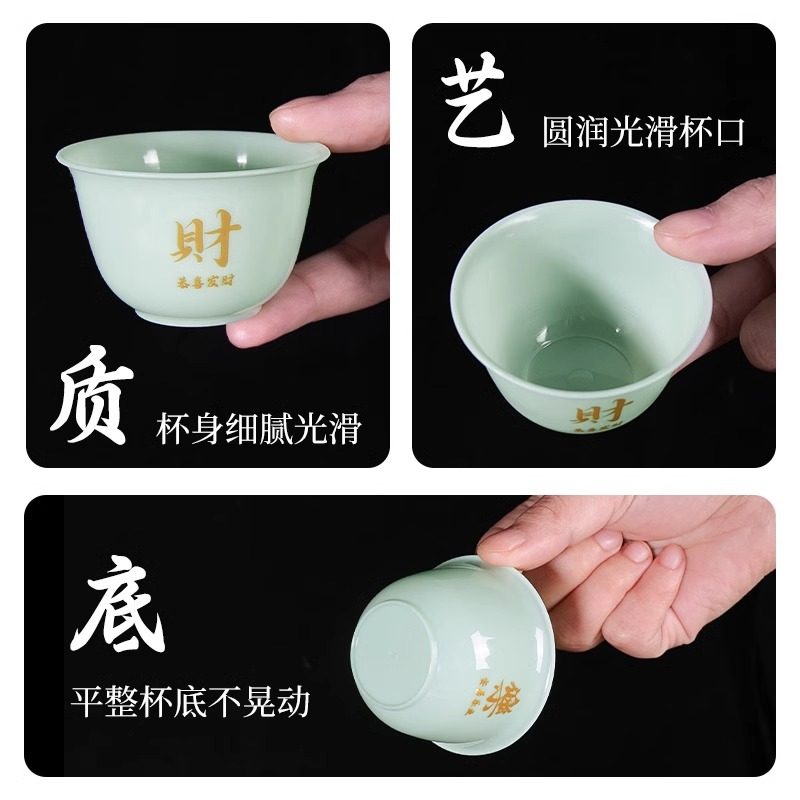 一次性高档翡翠绿茶杯仿玉食品级喝茶迷你小杯子待客专用功夫茶