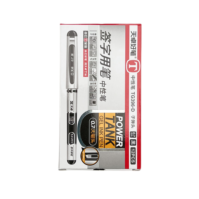 天卓好笔子弹头中性笔TG396-D办公商务签字笔0.7mm经典水笔黑色