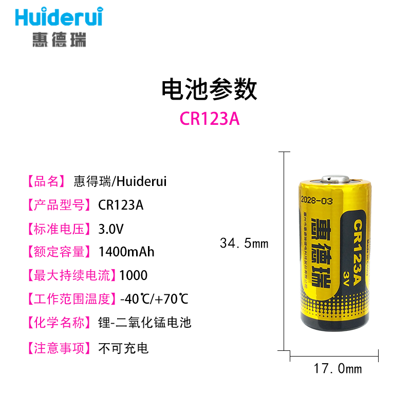 Huiderui惠德瑞CR123A-4锂电池3.0V工业机器人工控伺服CNC机床驱动器烟雾报警器照相机智能水表GPS定位仪门禁