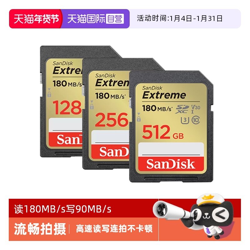 【自营】闪迪SD卡128G/256G 内存卡佳能尼康单反相机摄像机存储卡