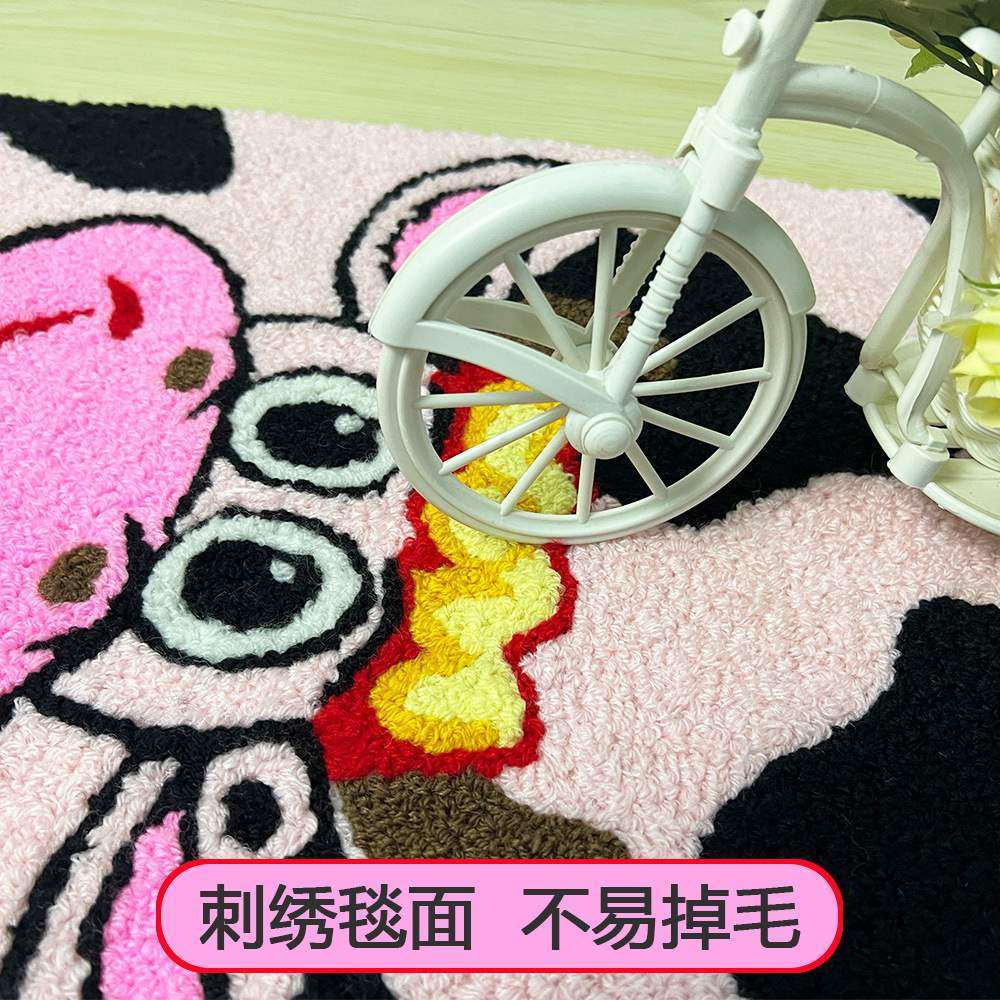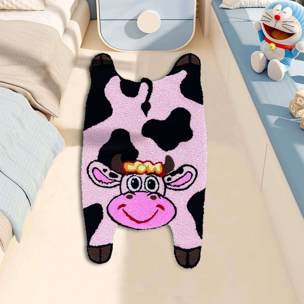 跨境家用刺绣奶牛儿童卧室床边地毯飘窗垫子楼梯入门地垫奶牛图案