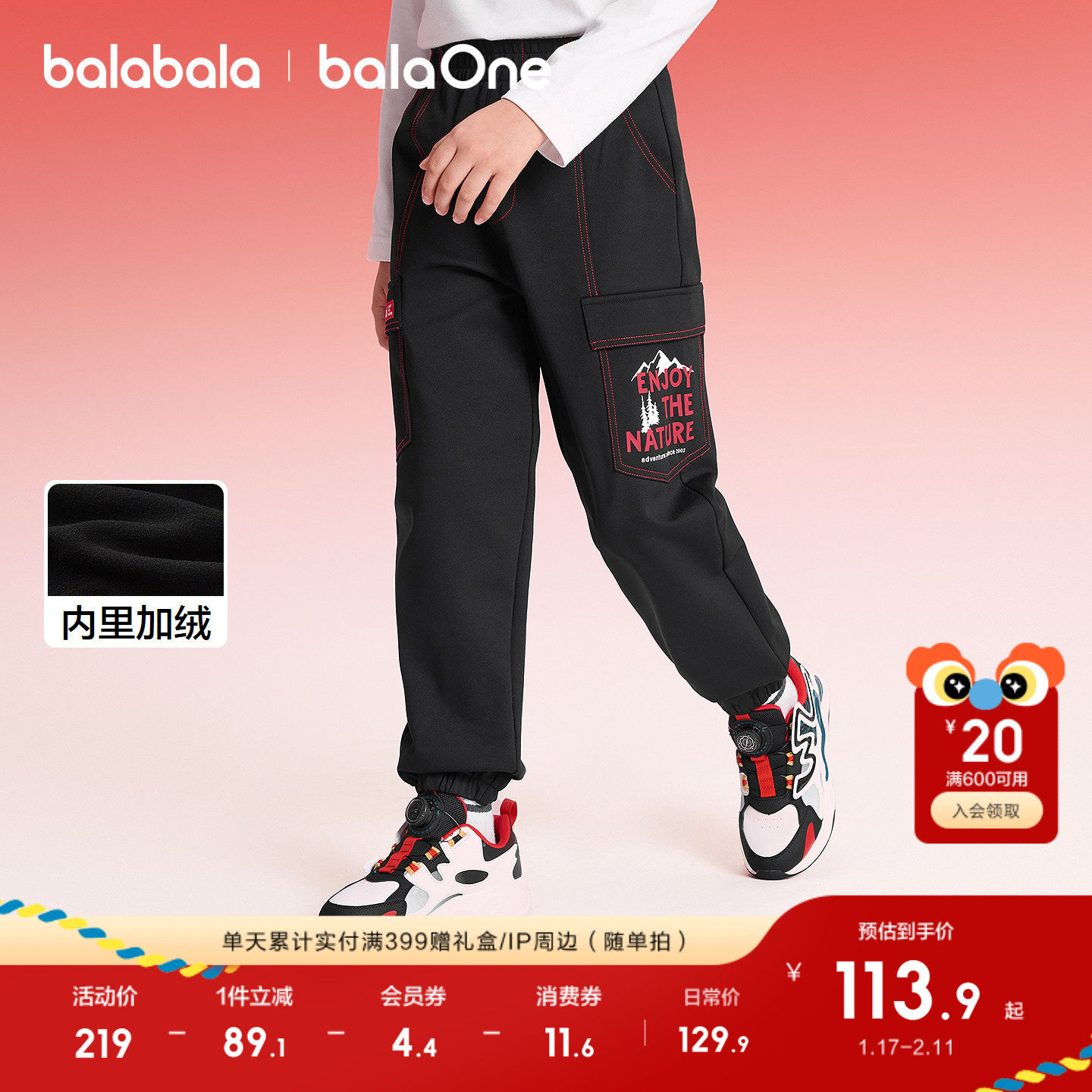 巴拉巴拉童装儿童加绒裤子男女童2026新款春秋装宽松拜年服束脚裤