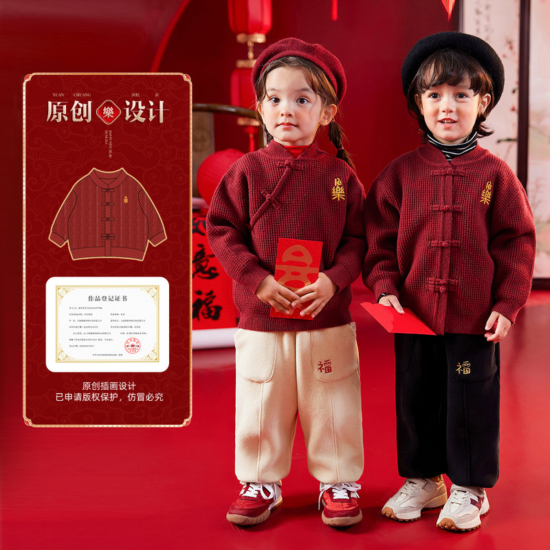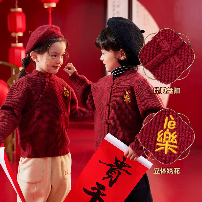 嘟嘟家儿童红色唐装宝宝过年喜庆拜年服男童毛衣女童周岁礼服冬季