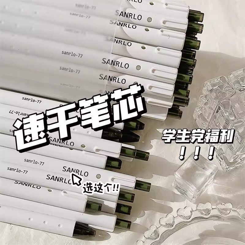 晴耕雨读刷题笔专用高颜值速干按动中性笔ins黑笔圆珠笔ST笔学生用考试笔顺滑0.5笔芯黑色水性签字笔水笔碳素