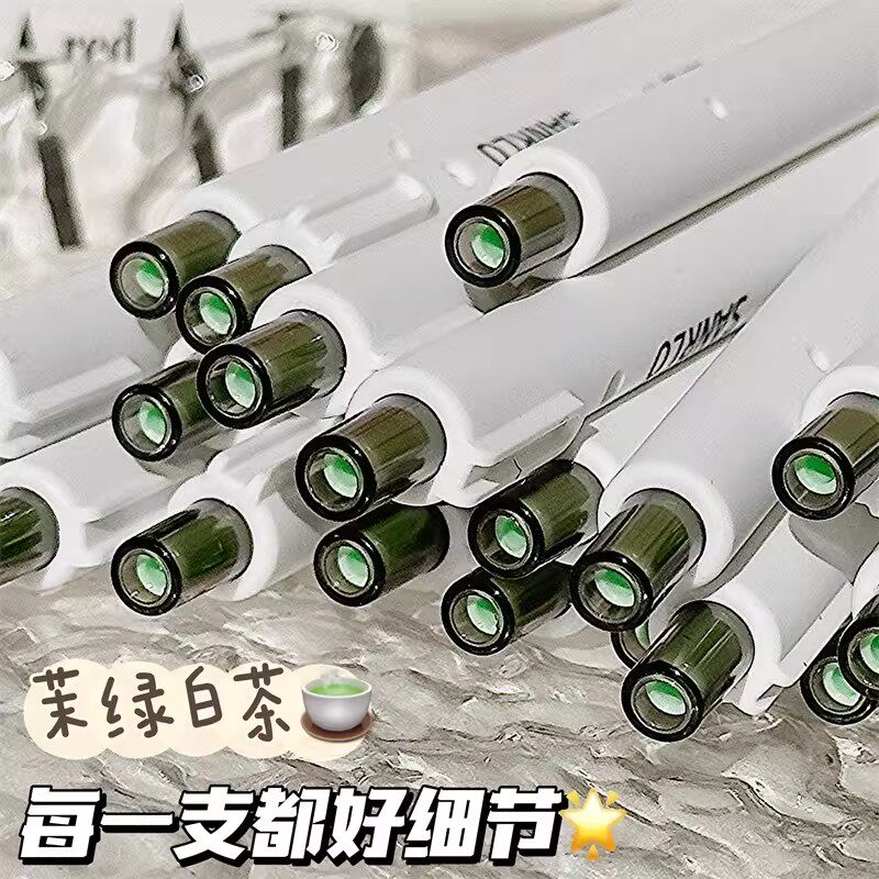 茉莉白茶笔简约按动式中性笔ST头黑色笔芯学生日常书写文具