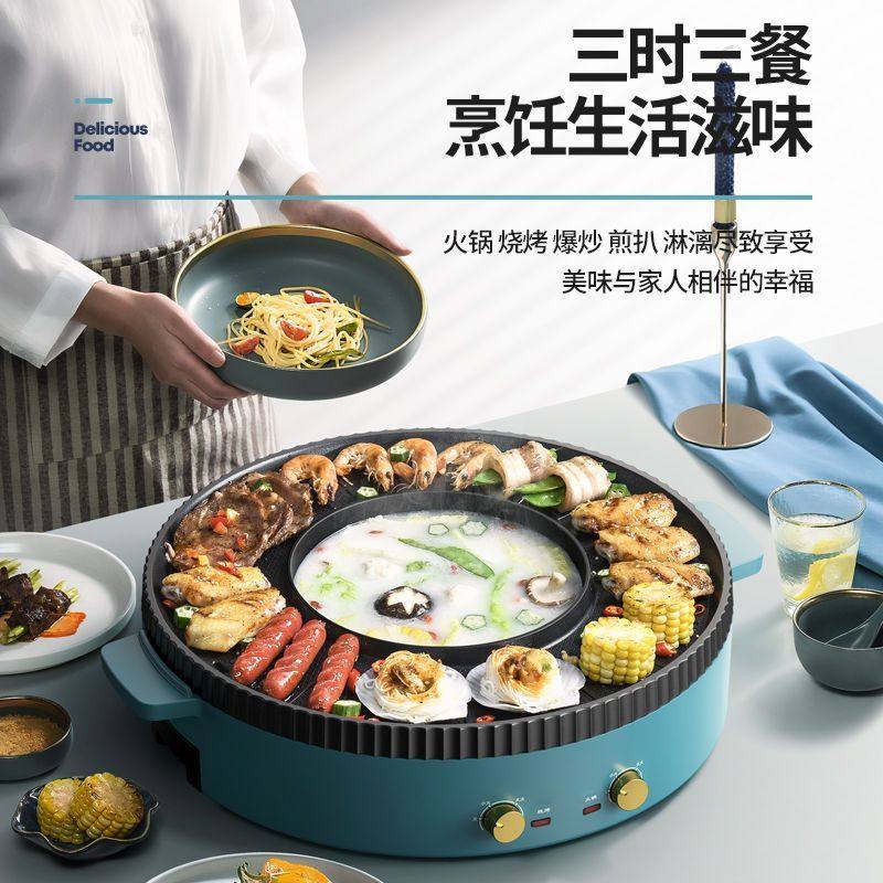 奥然多功能火锅锅电烧烤炉一体锅家用烤盘涮烤烤鱼烤肉机电烤新款