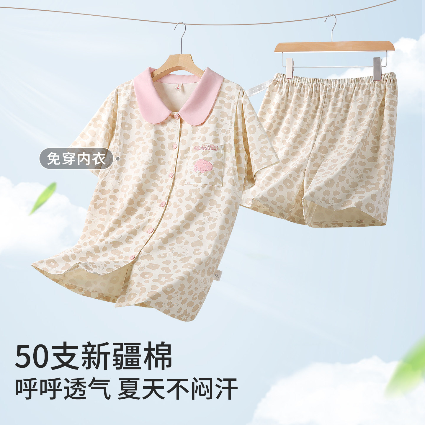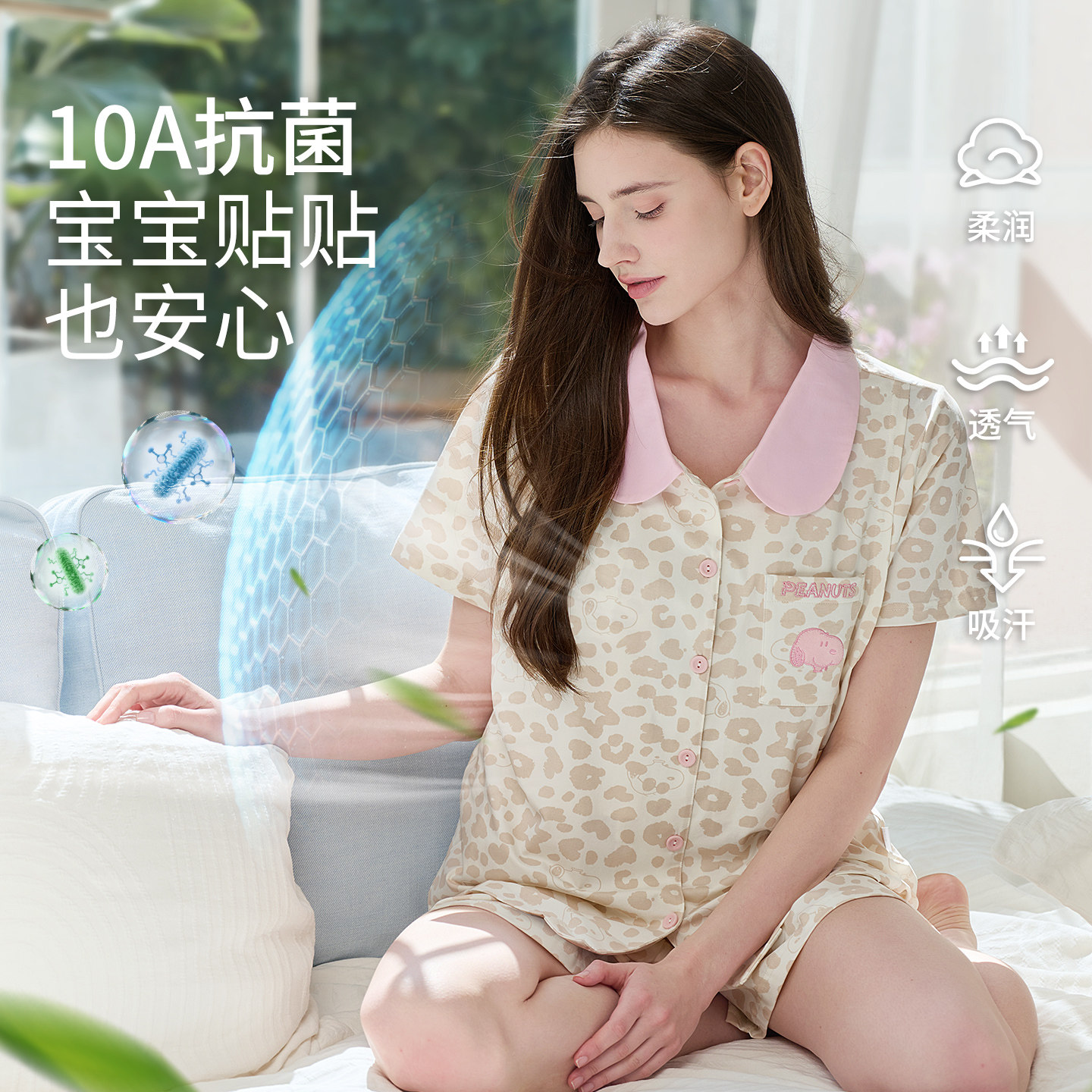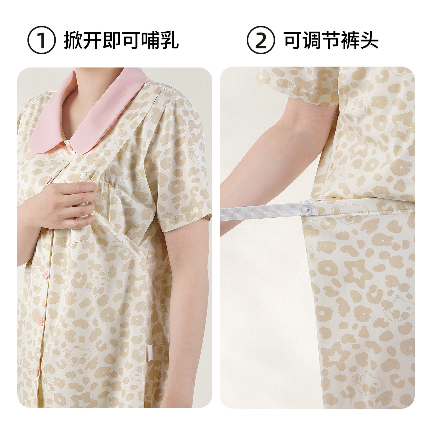 雅特茂&史努比豹纹短袖开衫月子服夏孕妇产妇哺乳睡衣孕期家居服