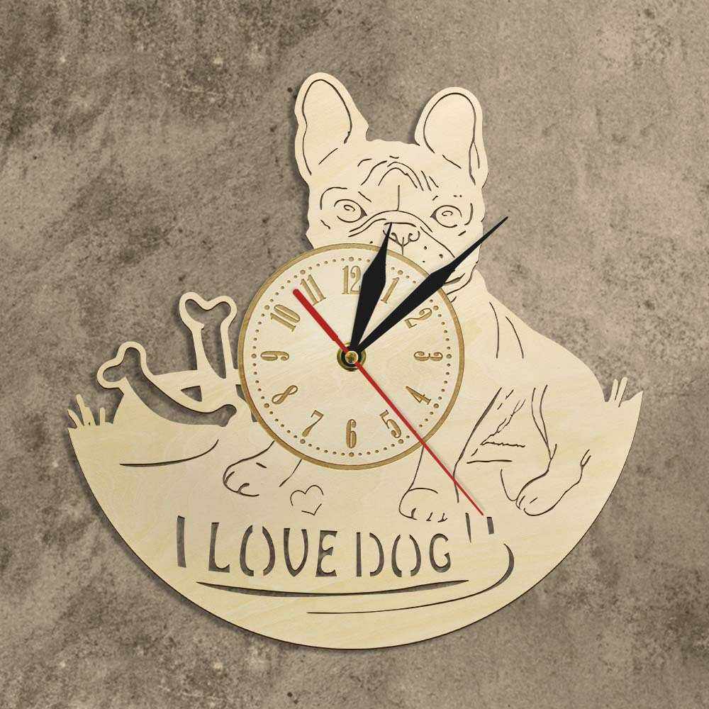 木制挂钟宠物犬造型墙钟现代宠物店铺墙面装饰壁钟亚马逊跨境