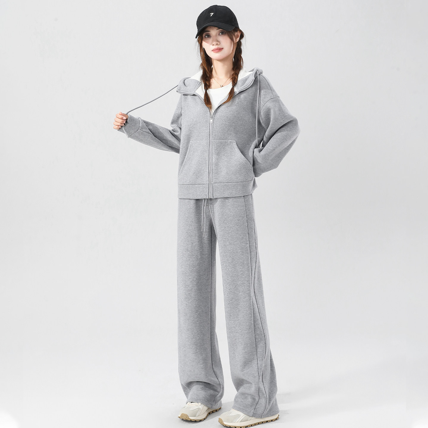 JVV SISTER慵懒风休闲套装女2025冬新款连帽开衫卫衣休闲裤两件套