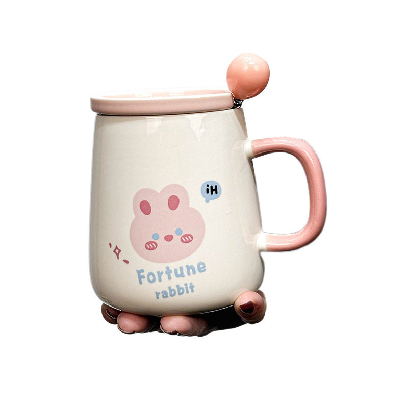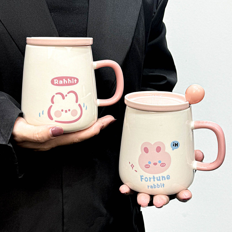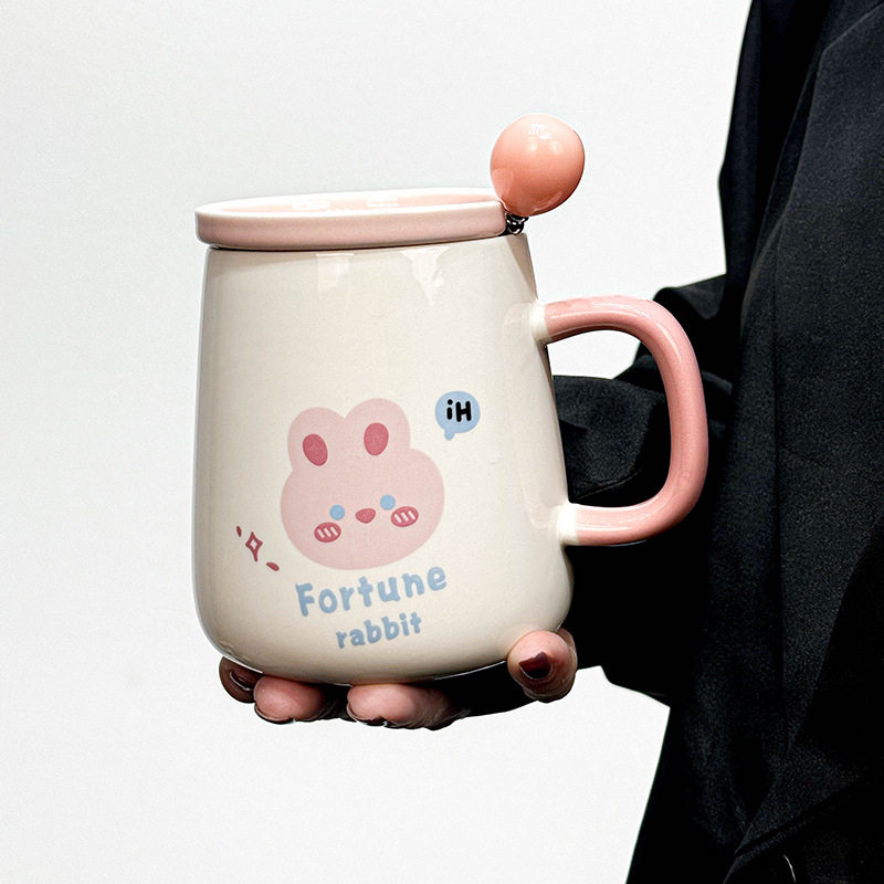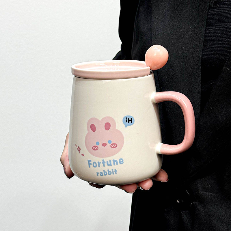 韩式ins可爱卡通粉嫩少女心陶瓷马克杯带盖勺早餐喝水杯公司小礼