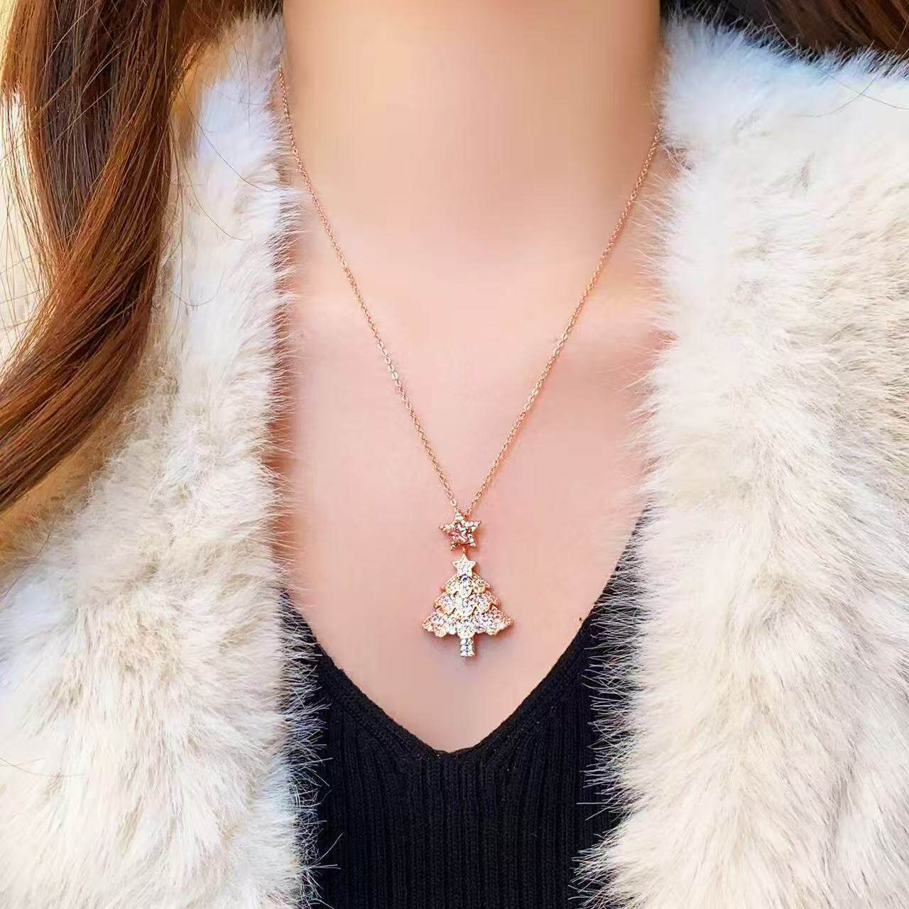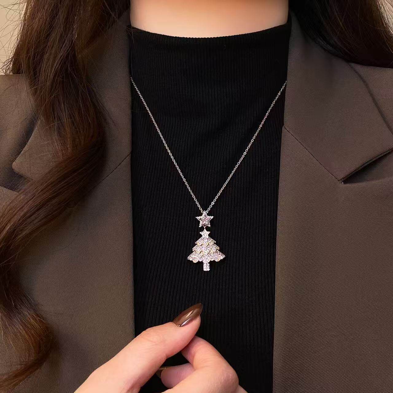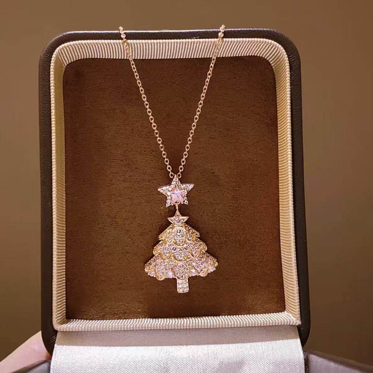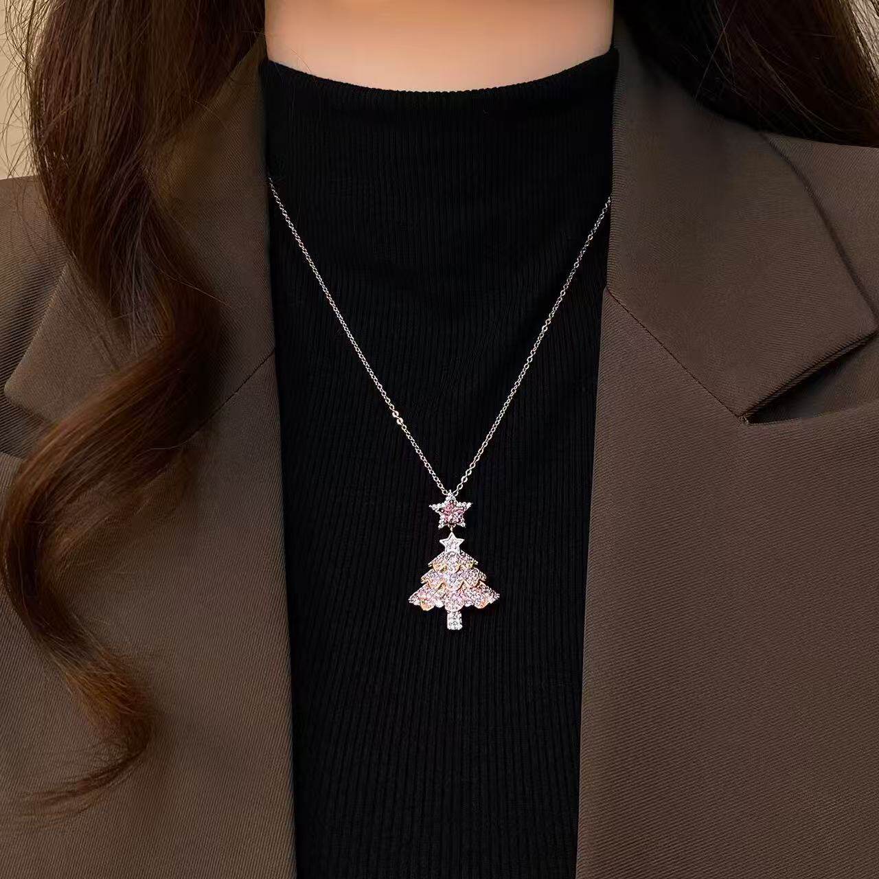 粉色满钻星星圣诞树项链新款秋冬配饰轻奢精致毛衣链摆件新年配饰